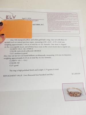 14k topaz and diamond ring with appraisal