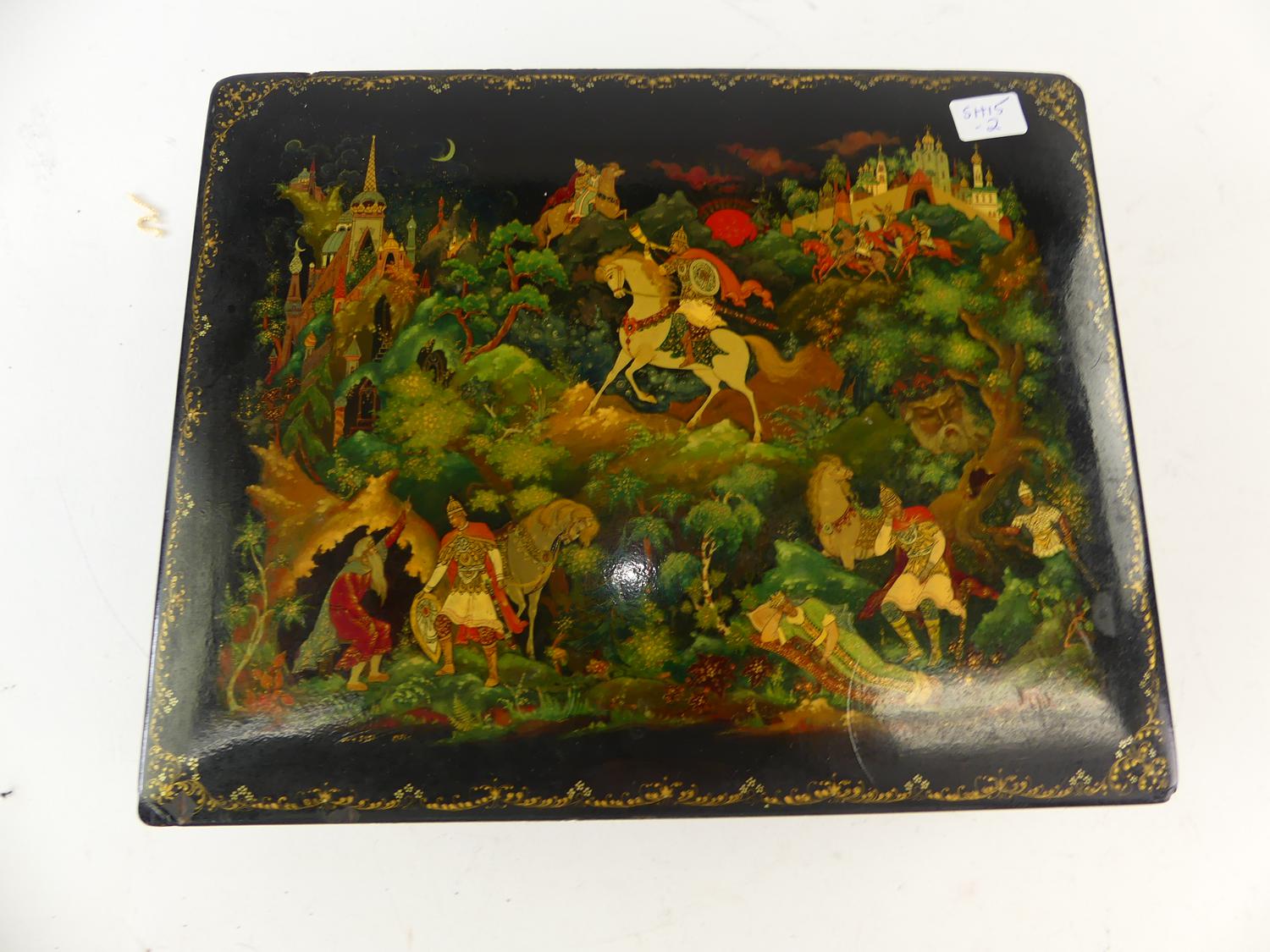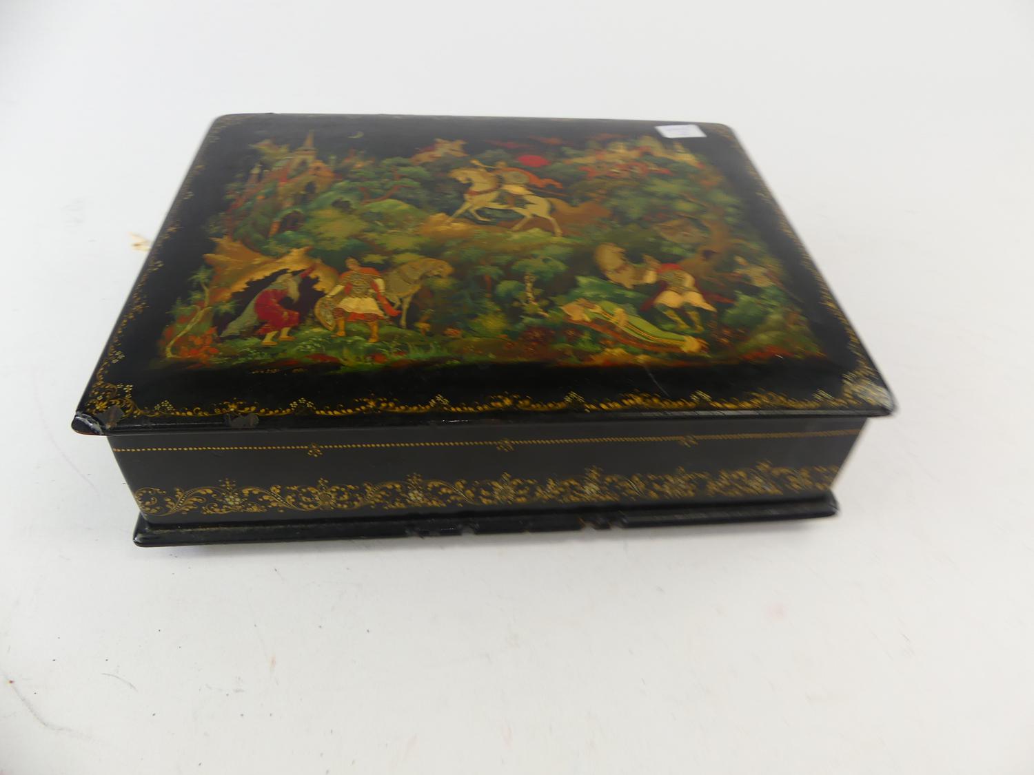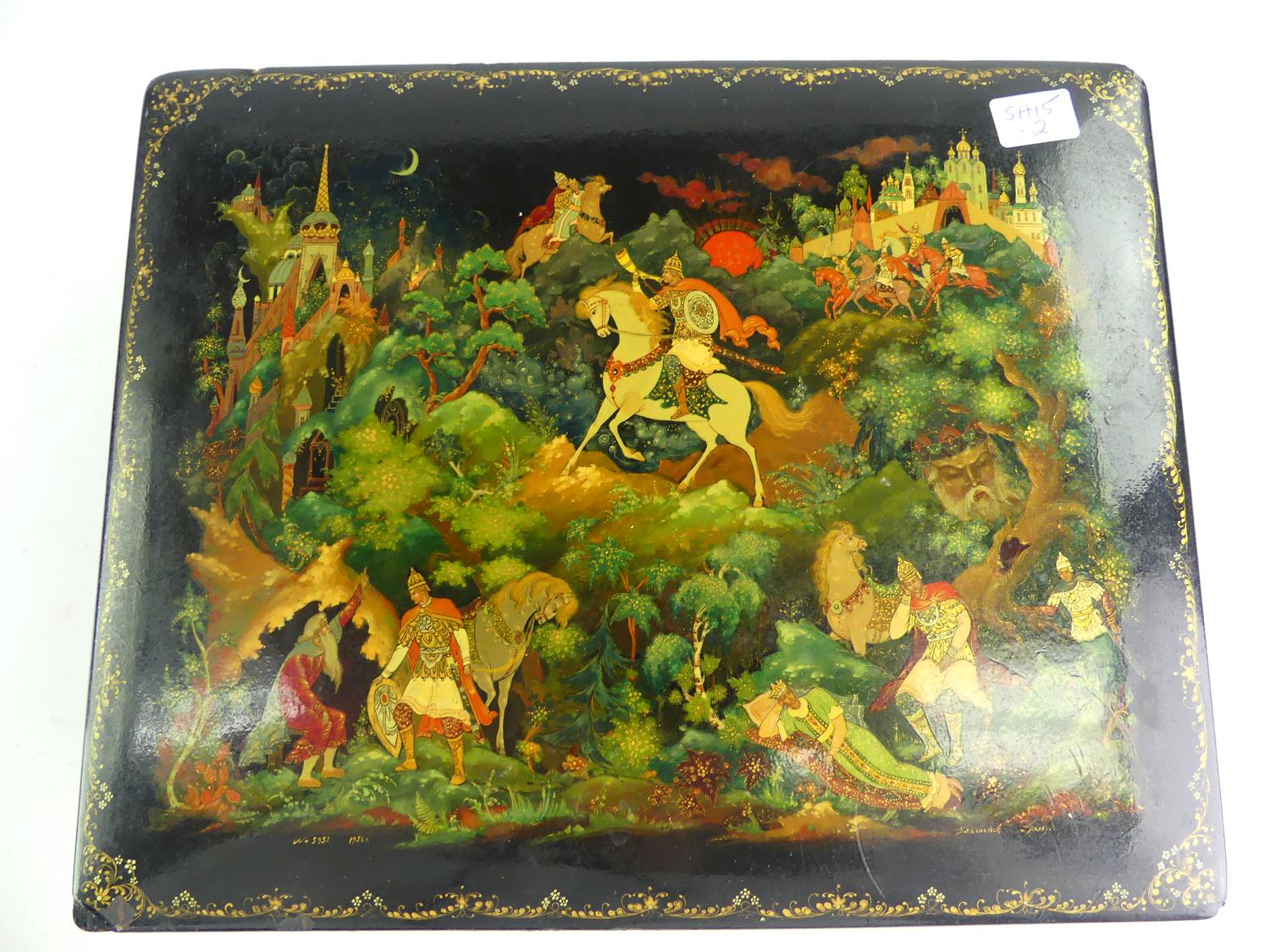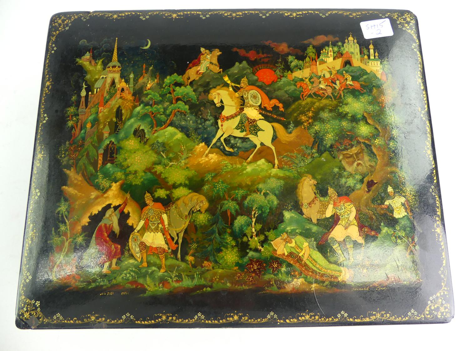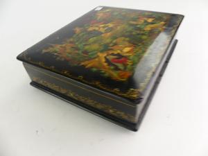 russian lacquered dresser box, 7 1/2" x 9 1/2"