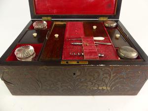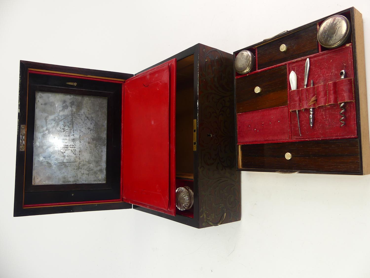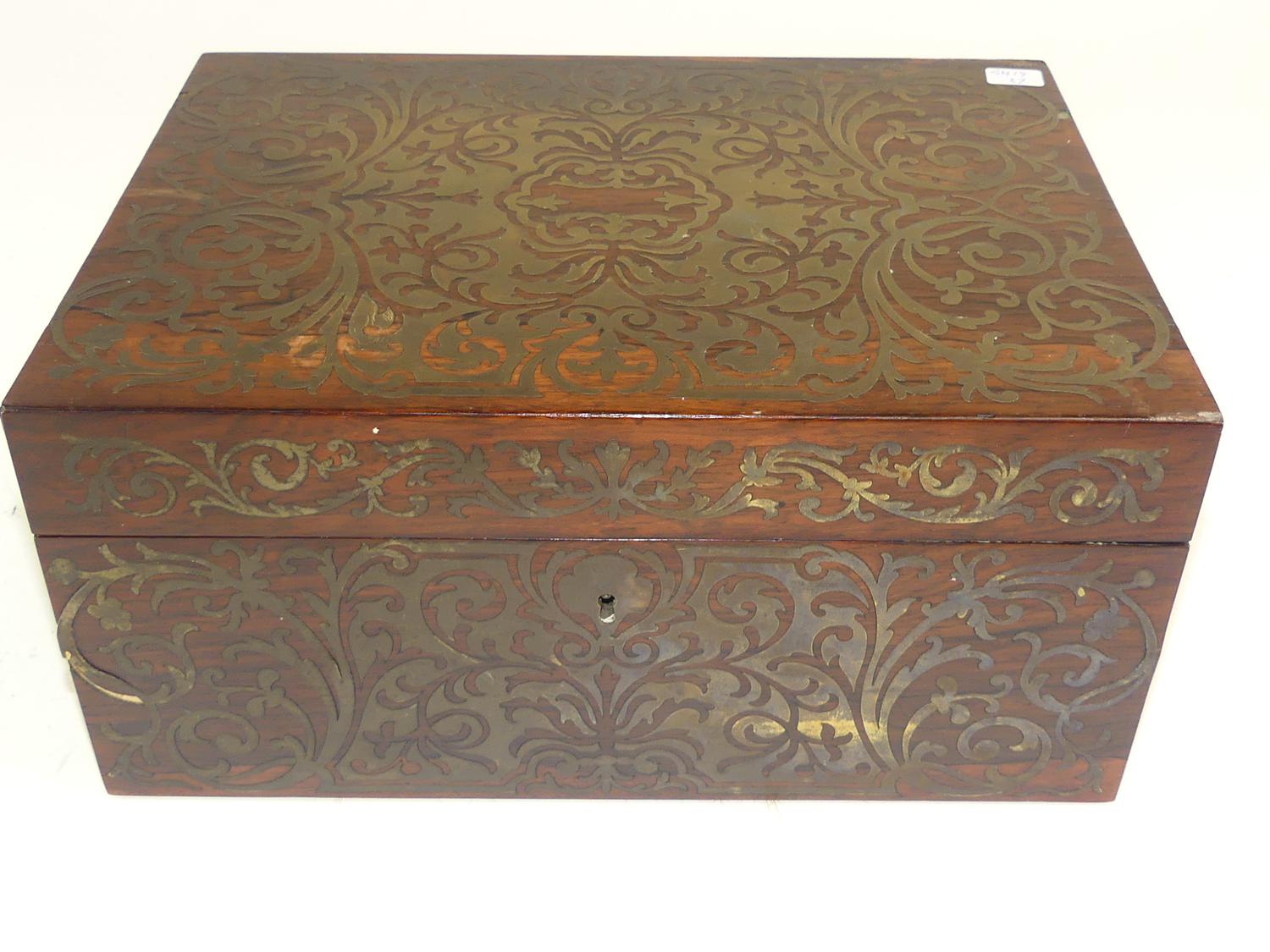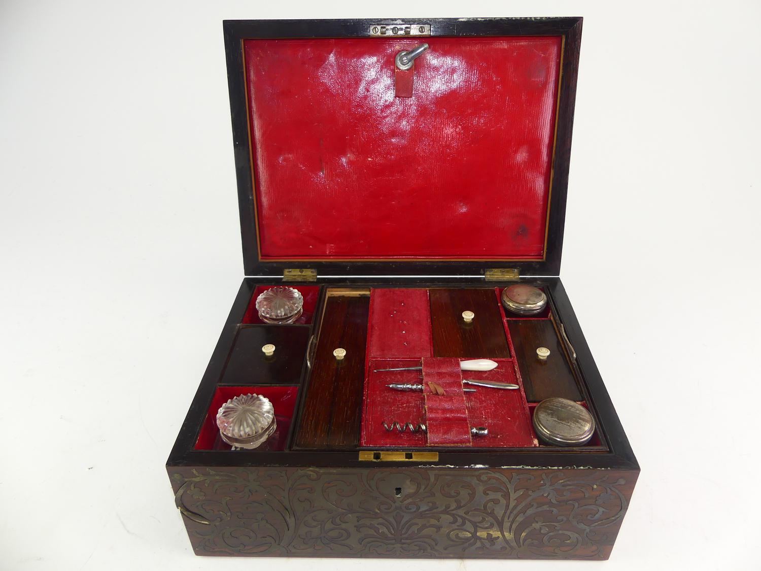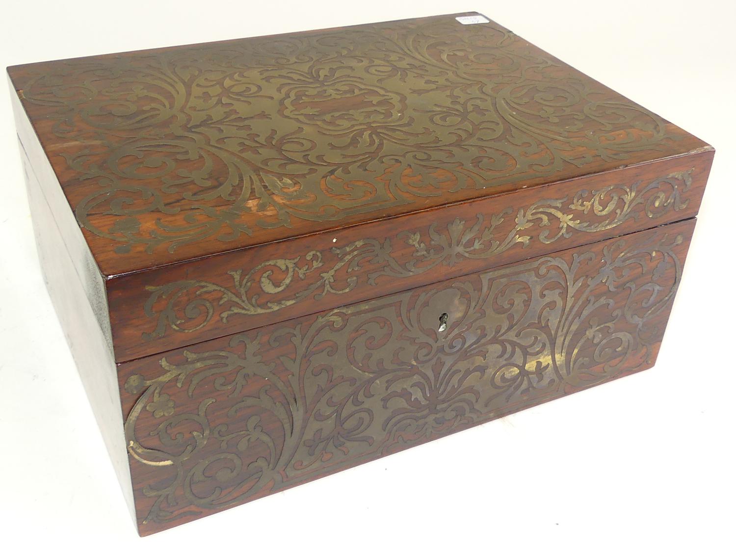 fine 19th century french boulle inlaid rosewood dressing box, 5 1/2" x 12" x 9"