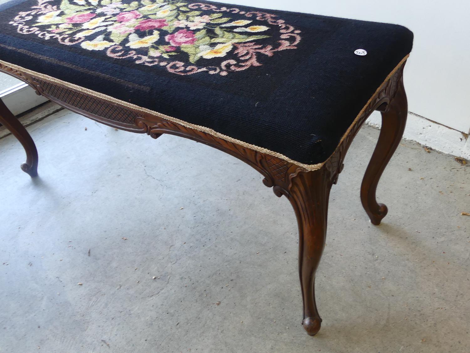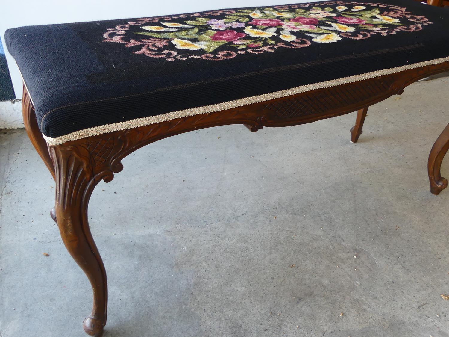french style carved walnut needlpoint bench, 21" x 43" x 16"