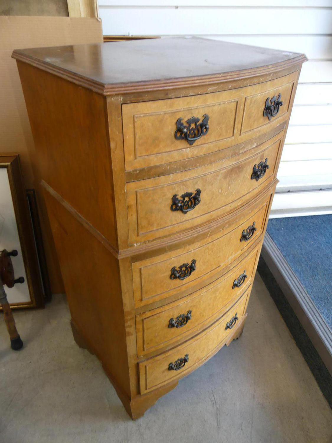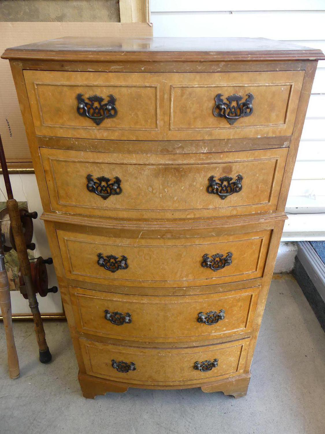 english walnut finish chest of drawers, c. 1920, 35 1/2" x 15" x 18 1/2"