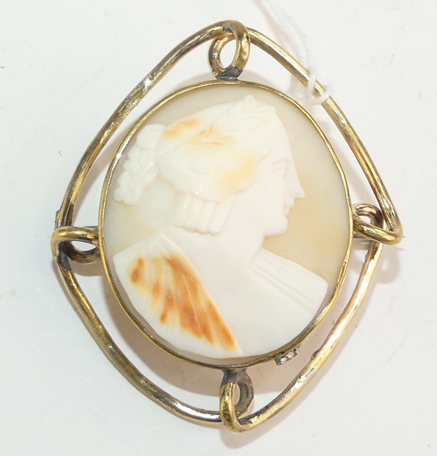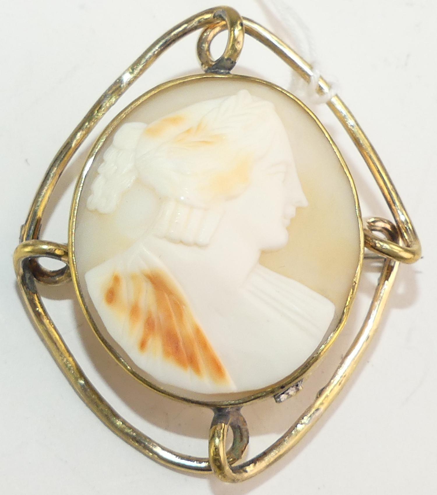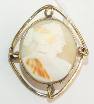 victorian gold filled shell cameo brooch