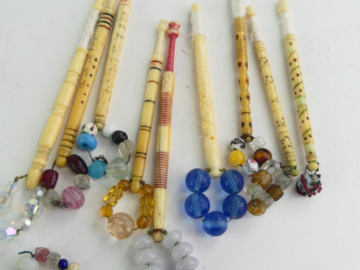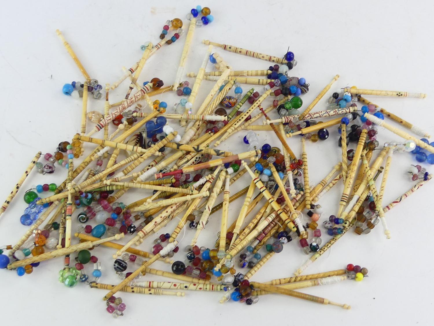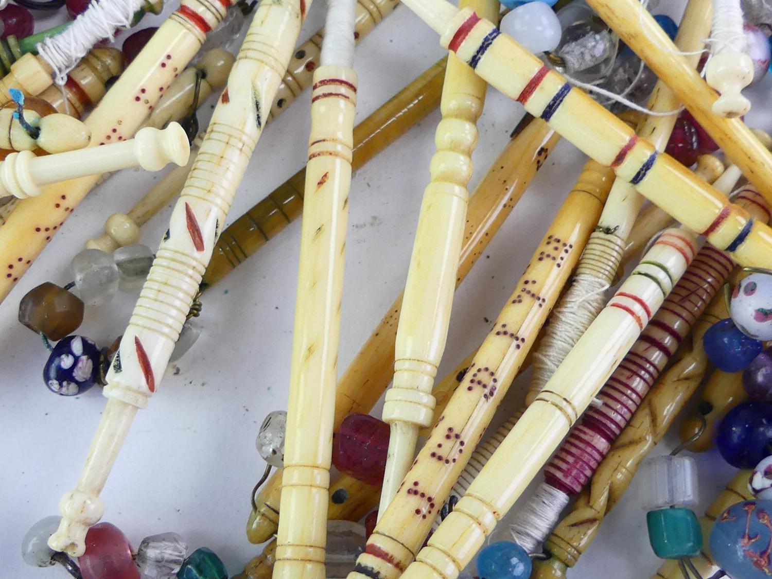 lot of antique mutton bone beaded lace makers bobbins