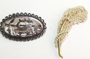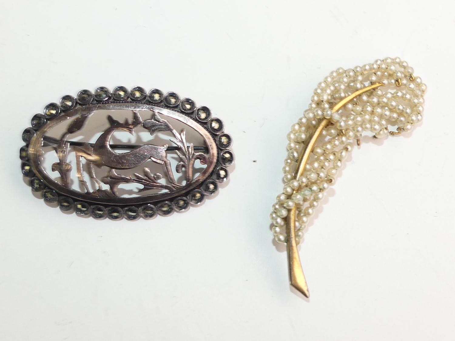 two victorian gold filled brooches, silver and marcasite