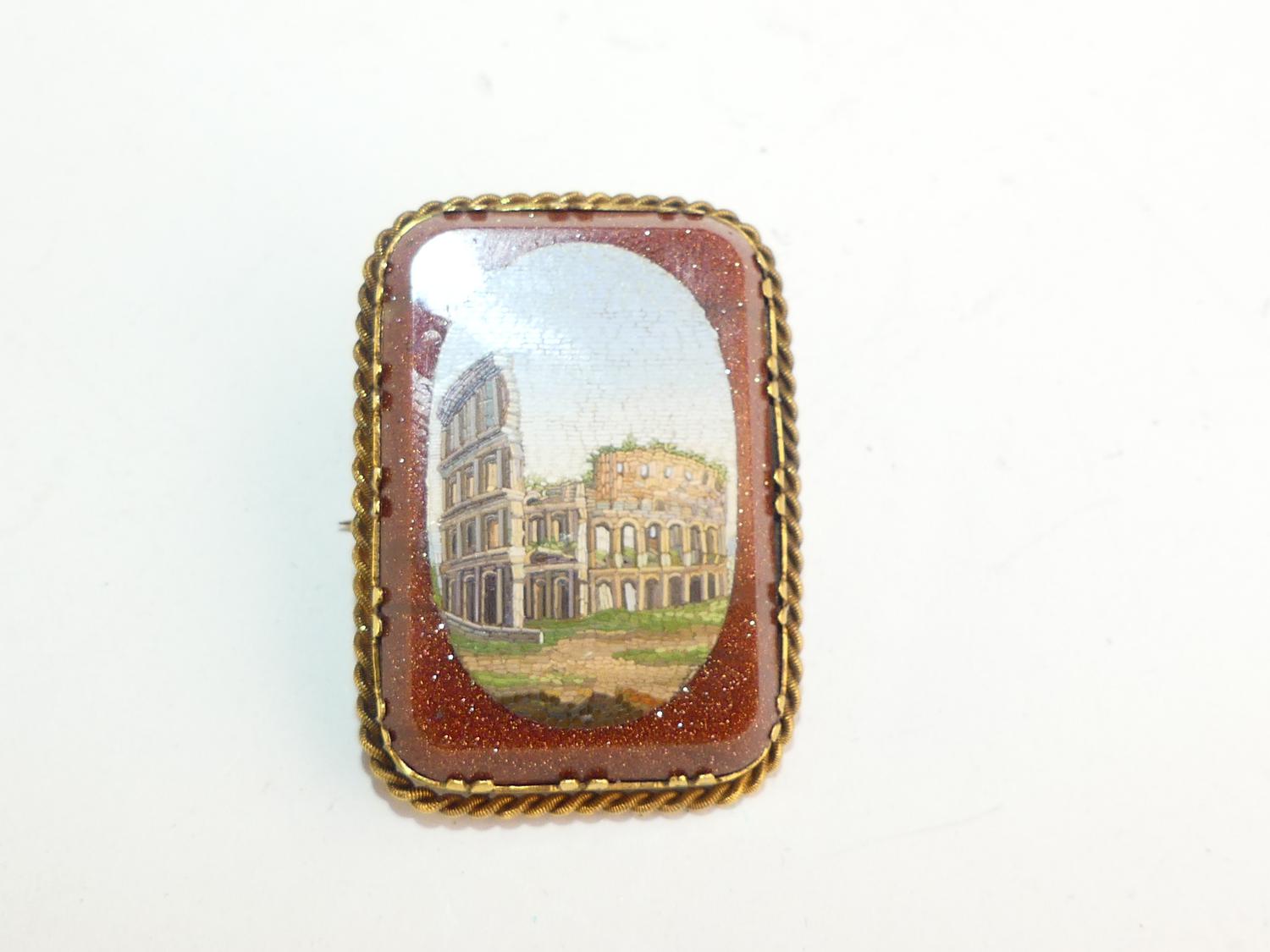 victorian goldstone roman colosseum micro mosaic brooch