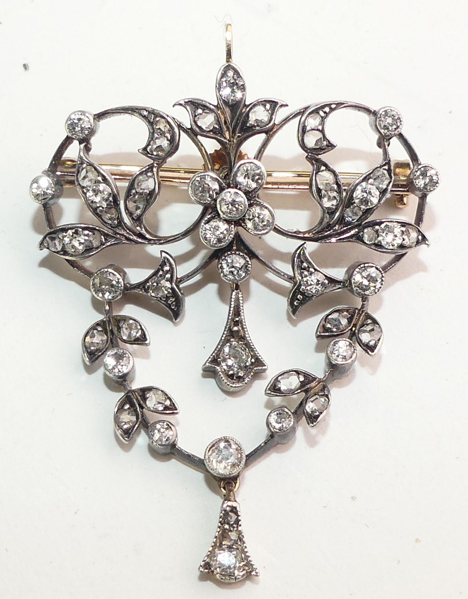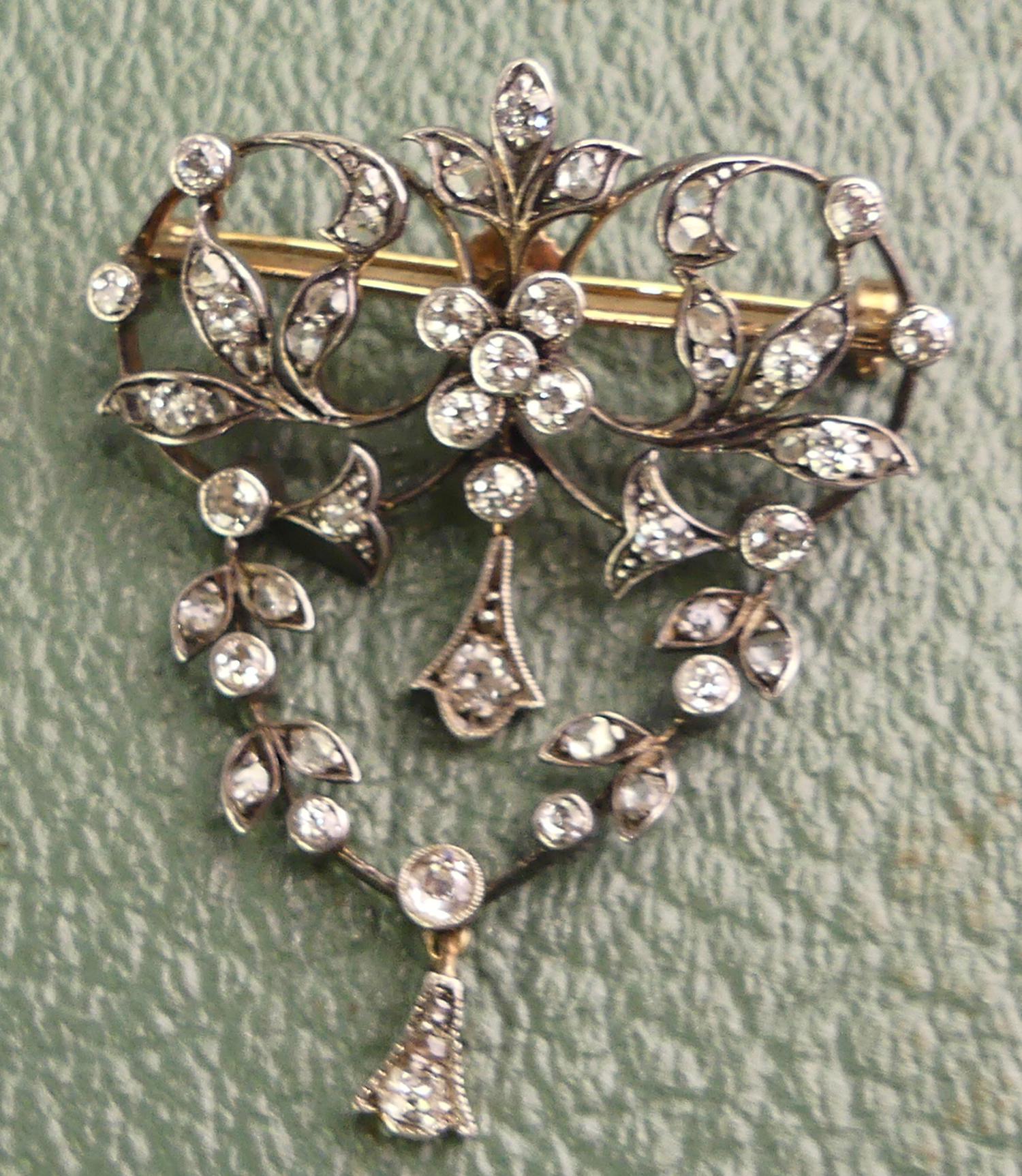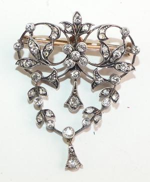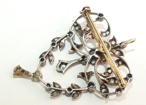 edwardian silver 14k pink gold diamond brooch