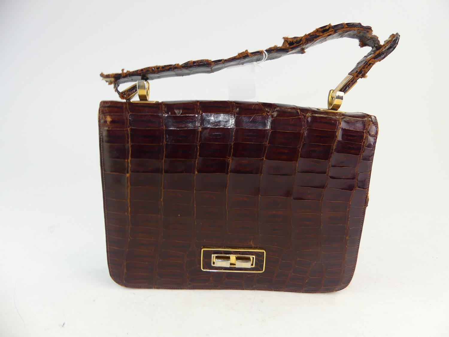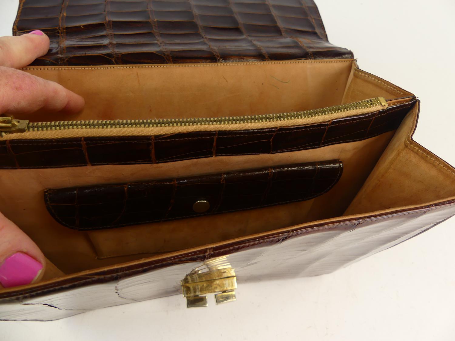 vintage caymen alligator purse, 10" x 7 3/4"