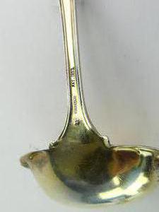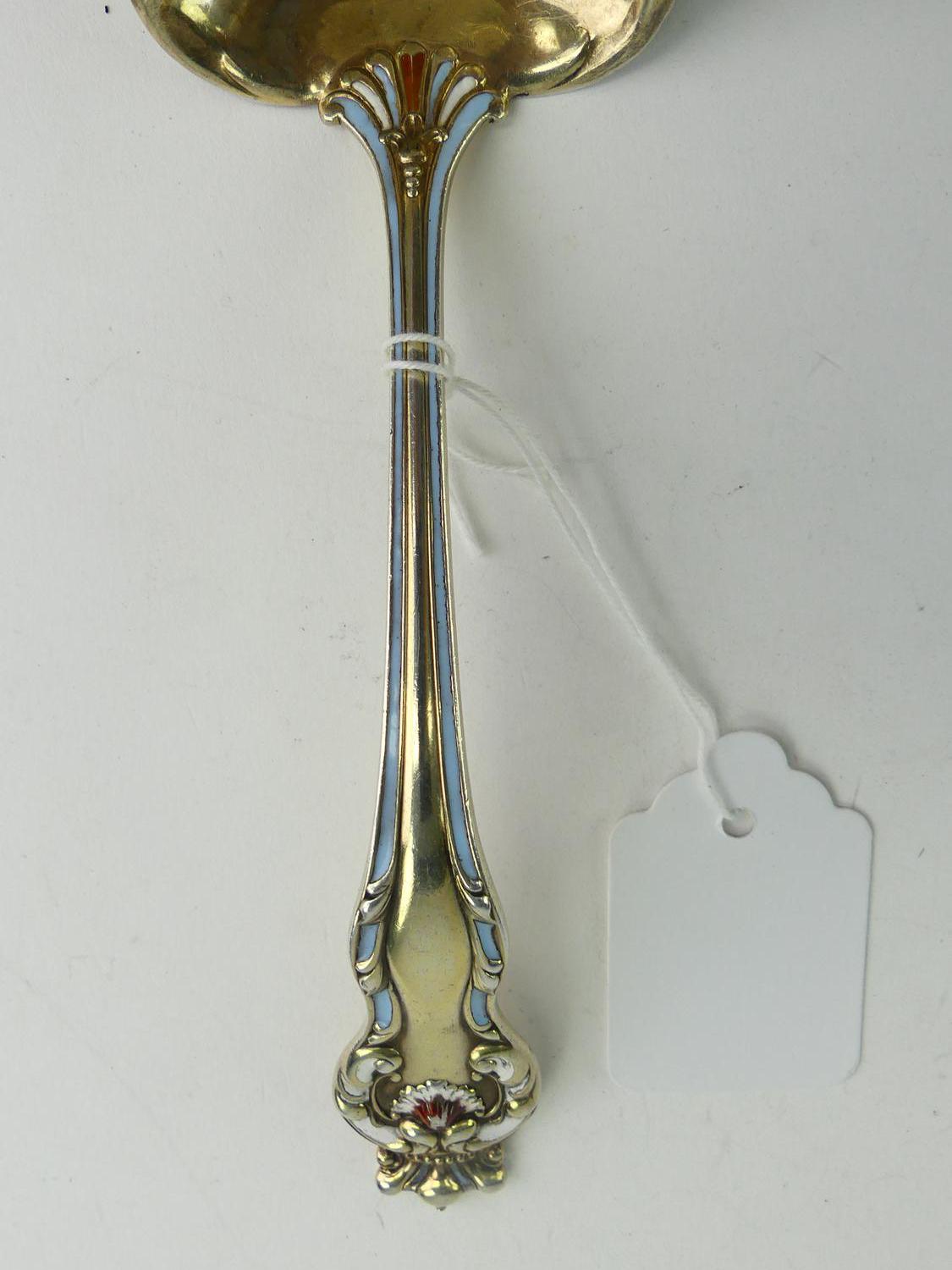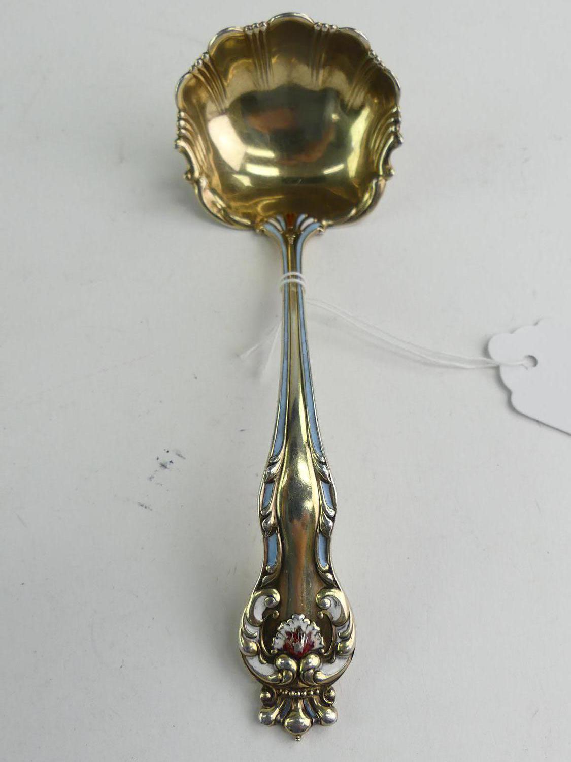 gilded and enameled sterling silver "mount vernon" ladle, 72 grams