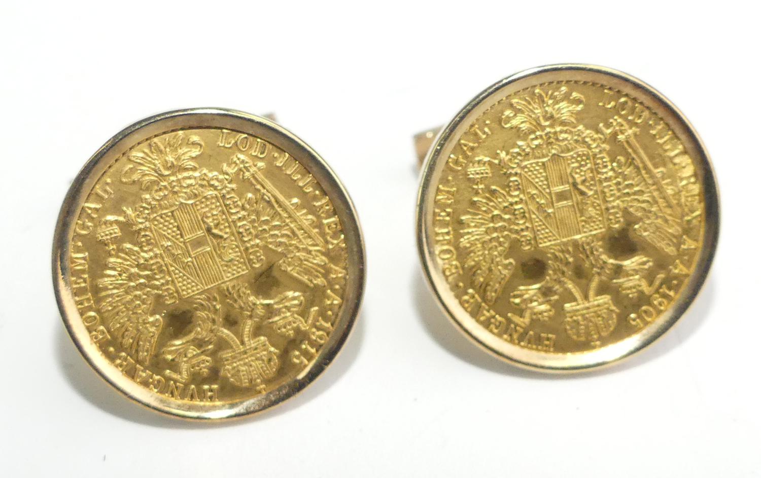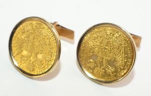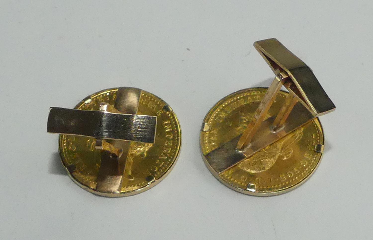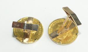 pair of 1915 austrian ducat mounted cufflinks in 14k yellow gold, 12.1 grams