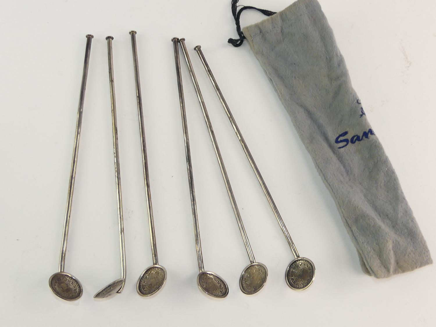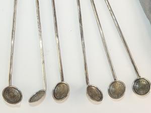 six taxico sterling silver straw spoons, length 8 1/2"