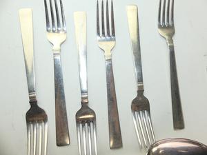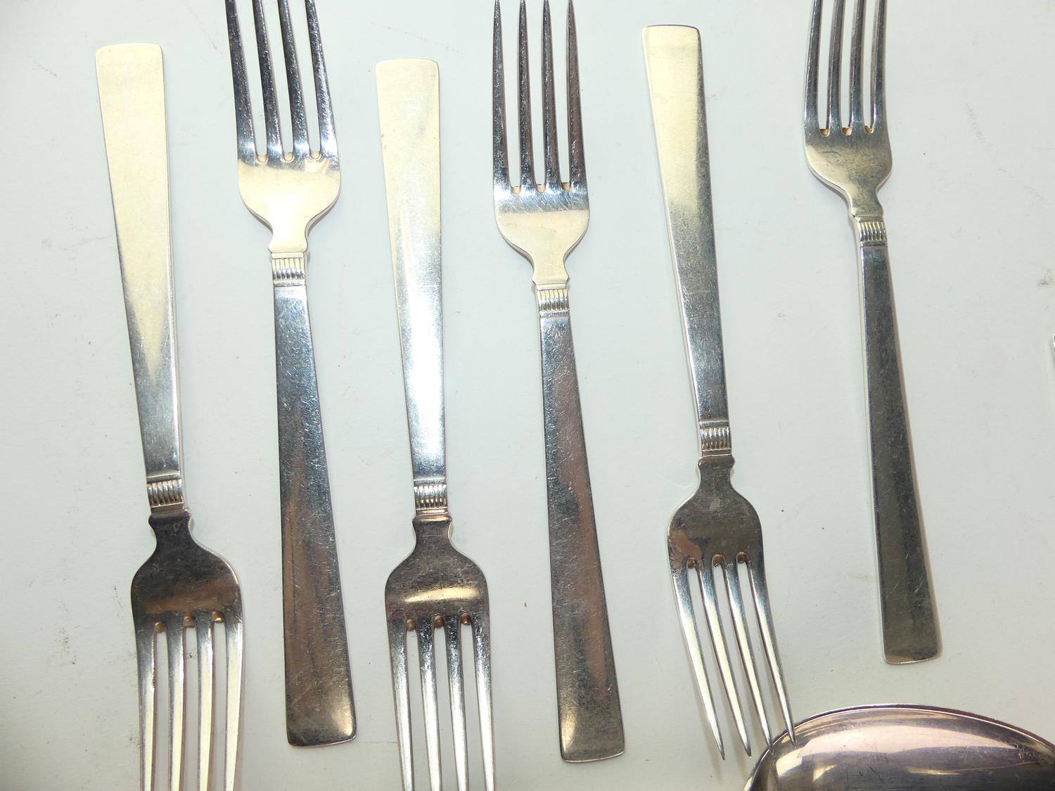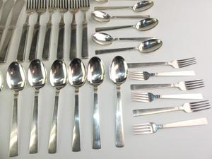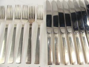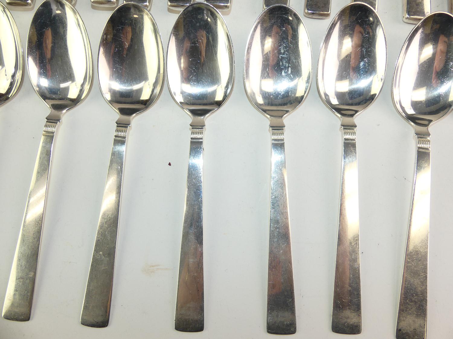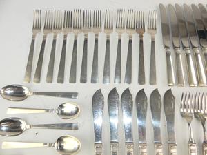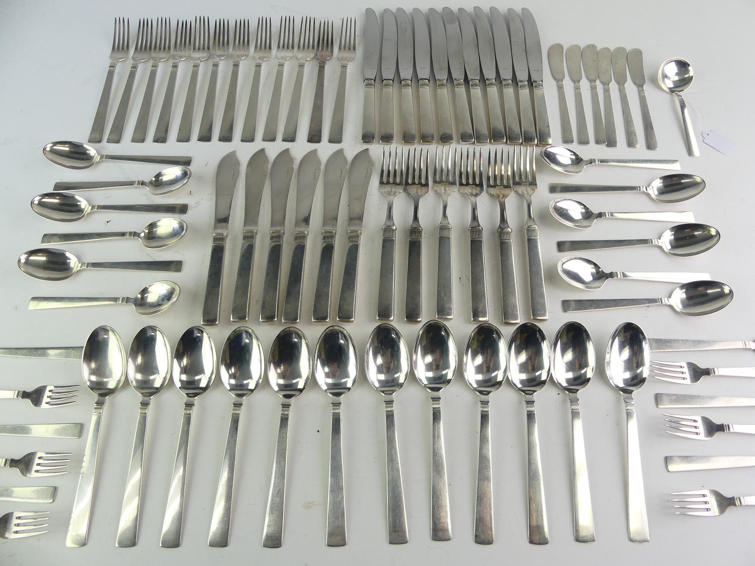 mid century 78 pc set of prince harald pattern 830 silver flatware, norway, 1636, grams of weighable silver, plus 11 dinner knives, 6 fish forks, 6 fish knives, with silver handles
