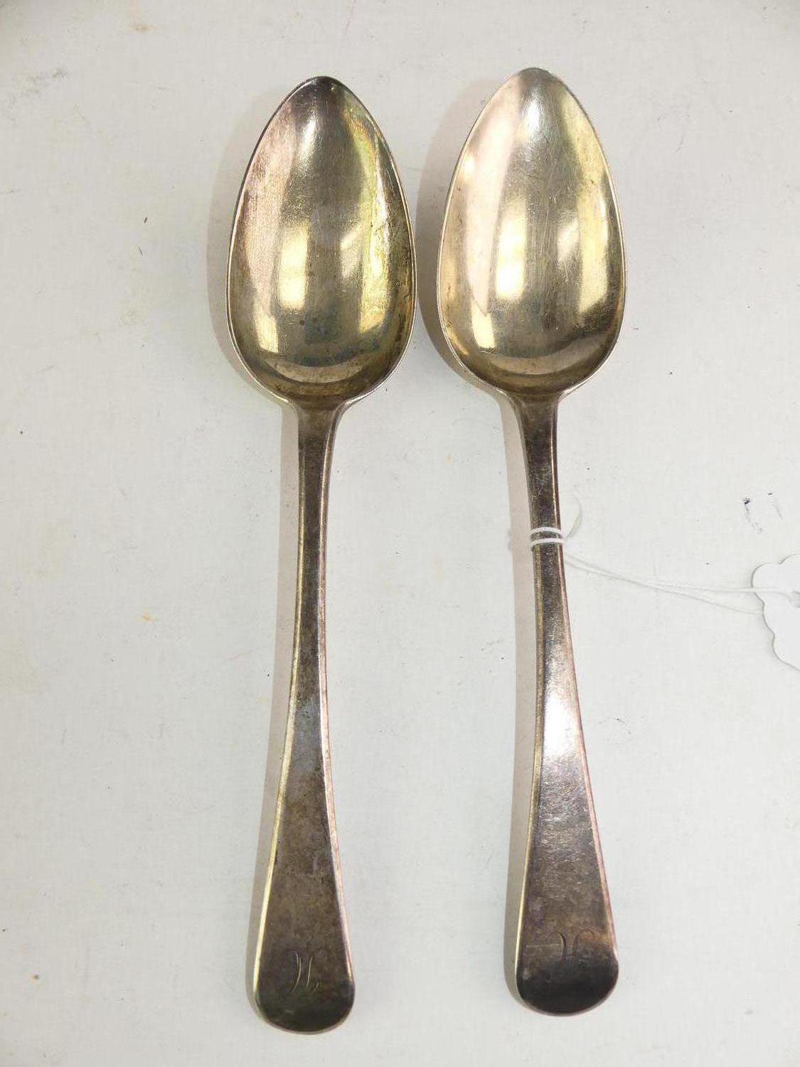 pair of george iii silver spoons, william eley i & william fearn, london 1804, length 8 1/2", 145 grams