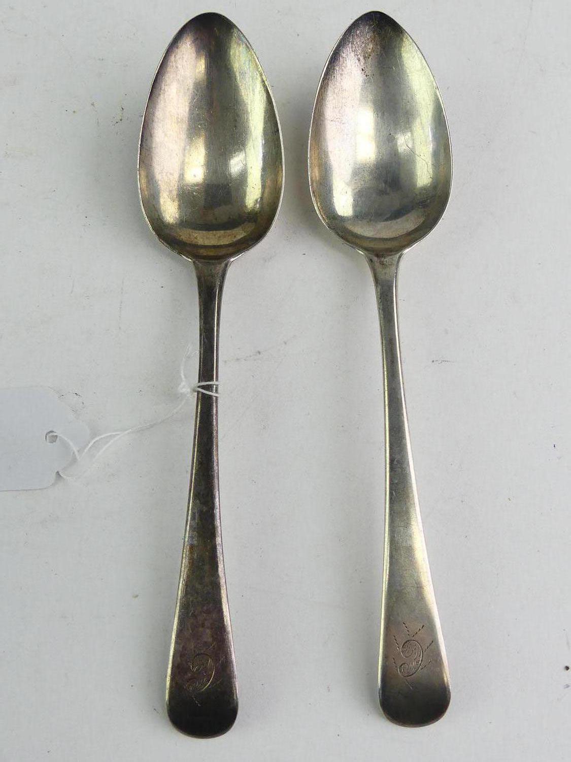 pair of george iii silver spoons, pete & william bateman, london 1807, length 8 1/2", 120 grams