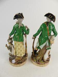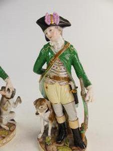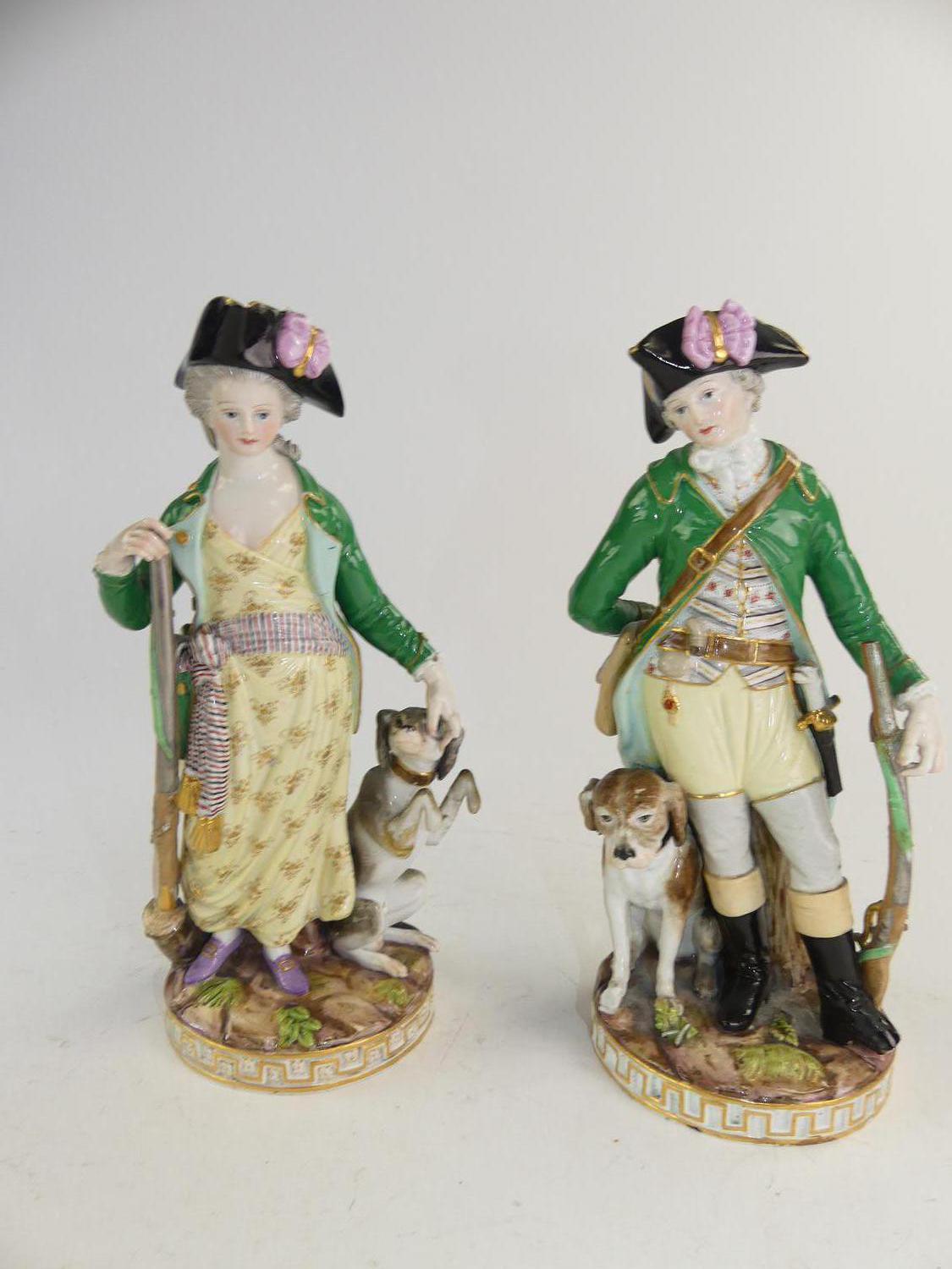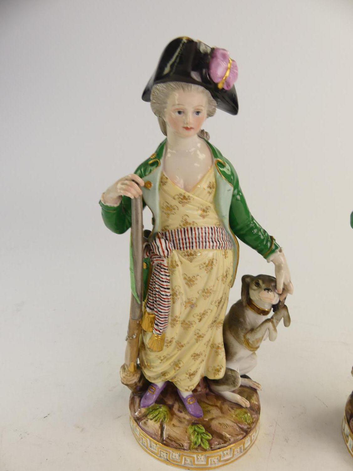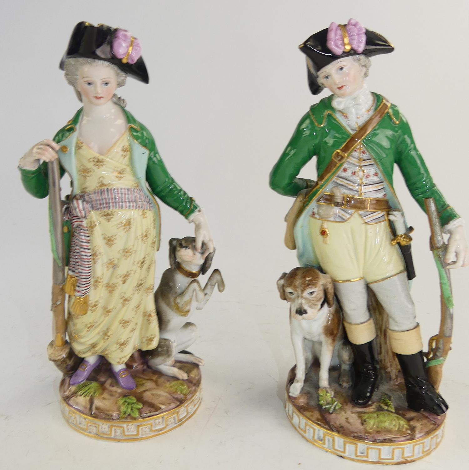 pair of meissen figures of "hunter & huntress", circa 1800, ht. 9 1/4" - losses and small damage