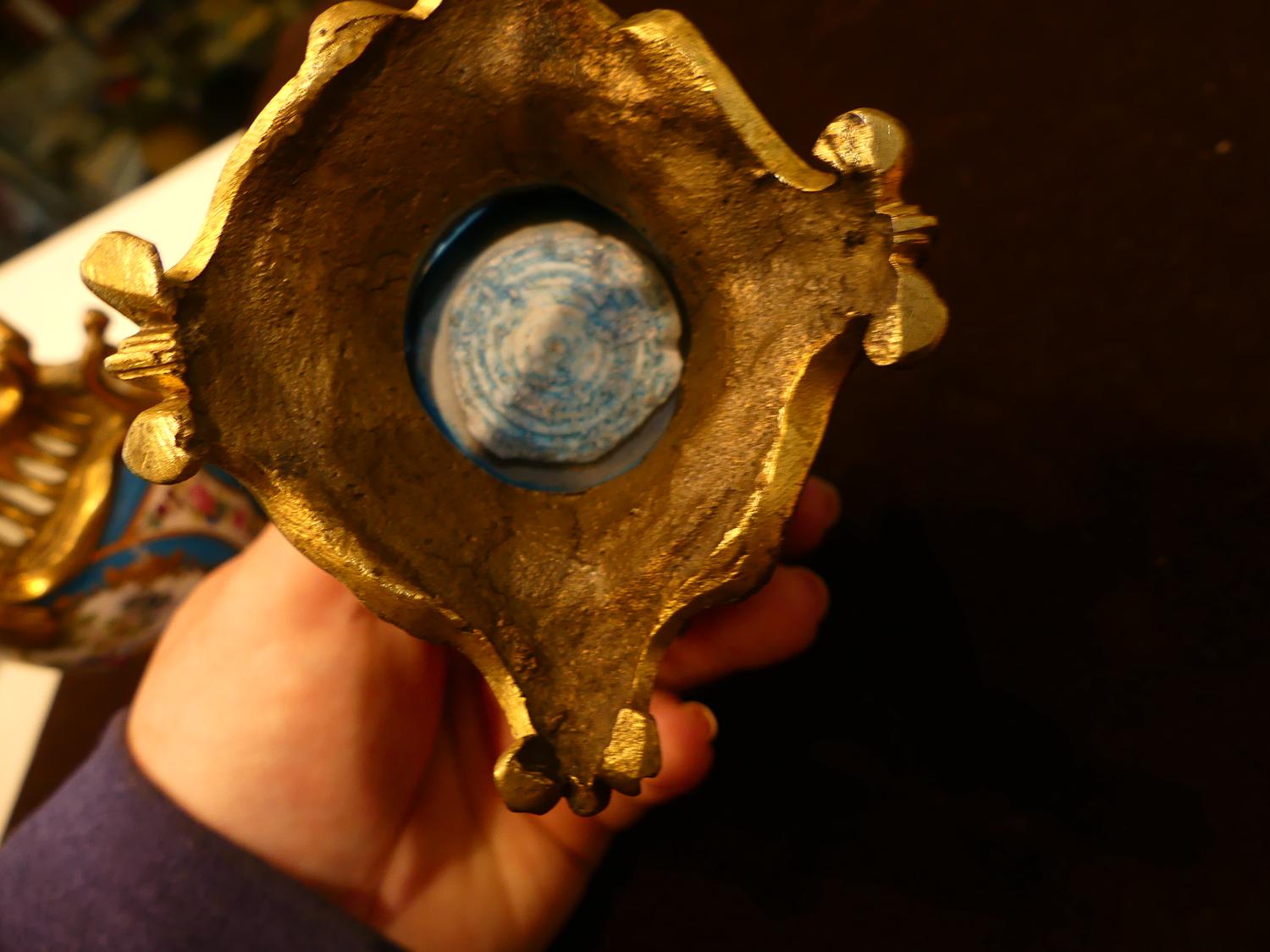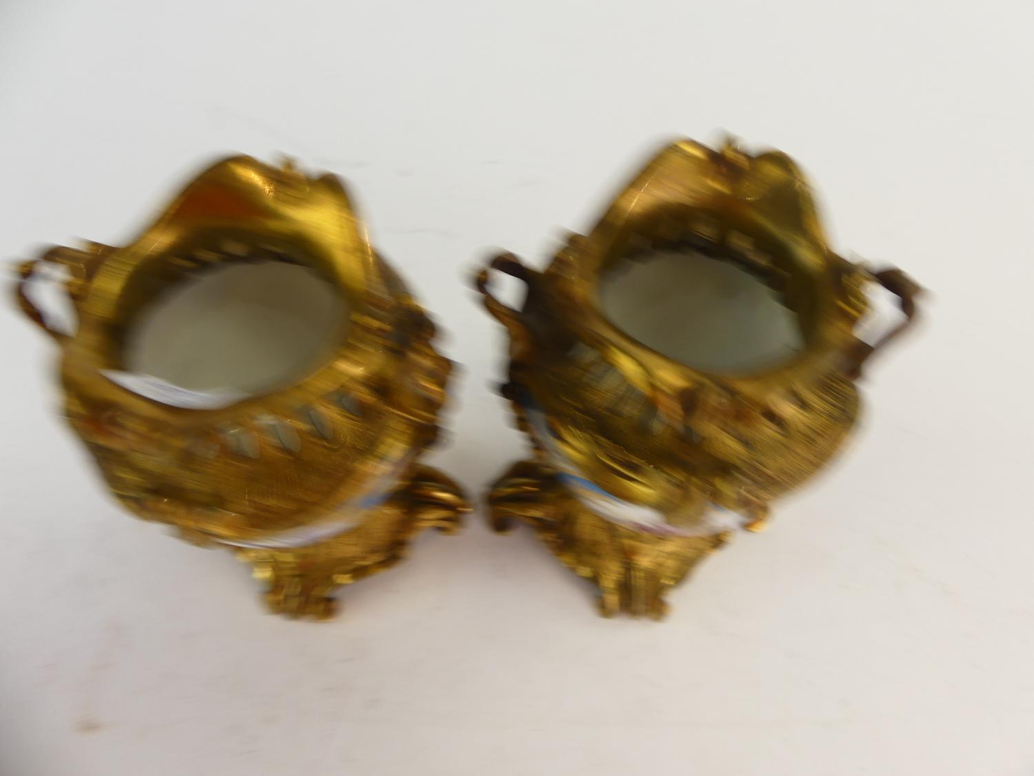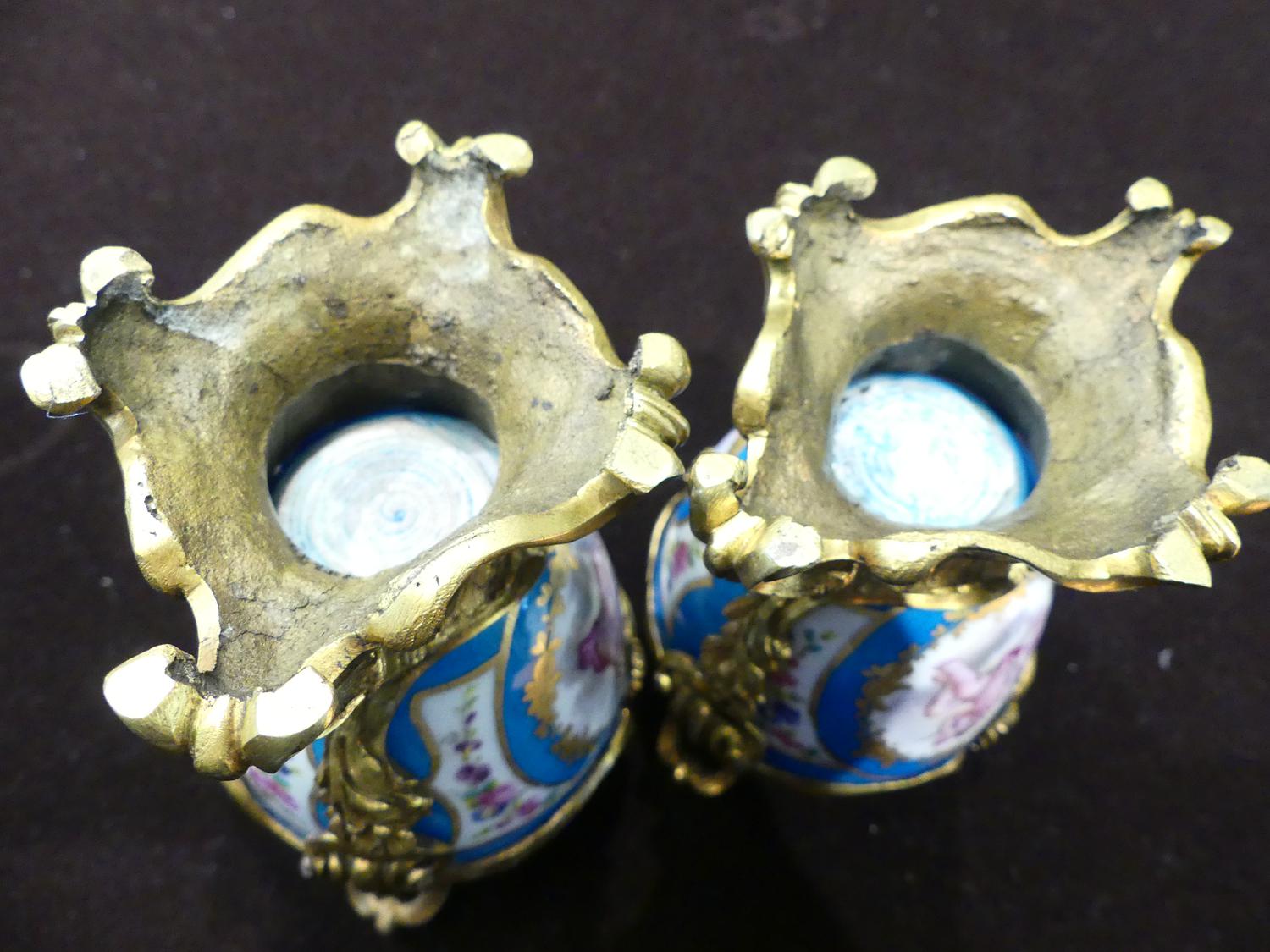 pair of 19th century french sevres style gilt bronze mounted porcelain vases, ht. 4 1/2"