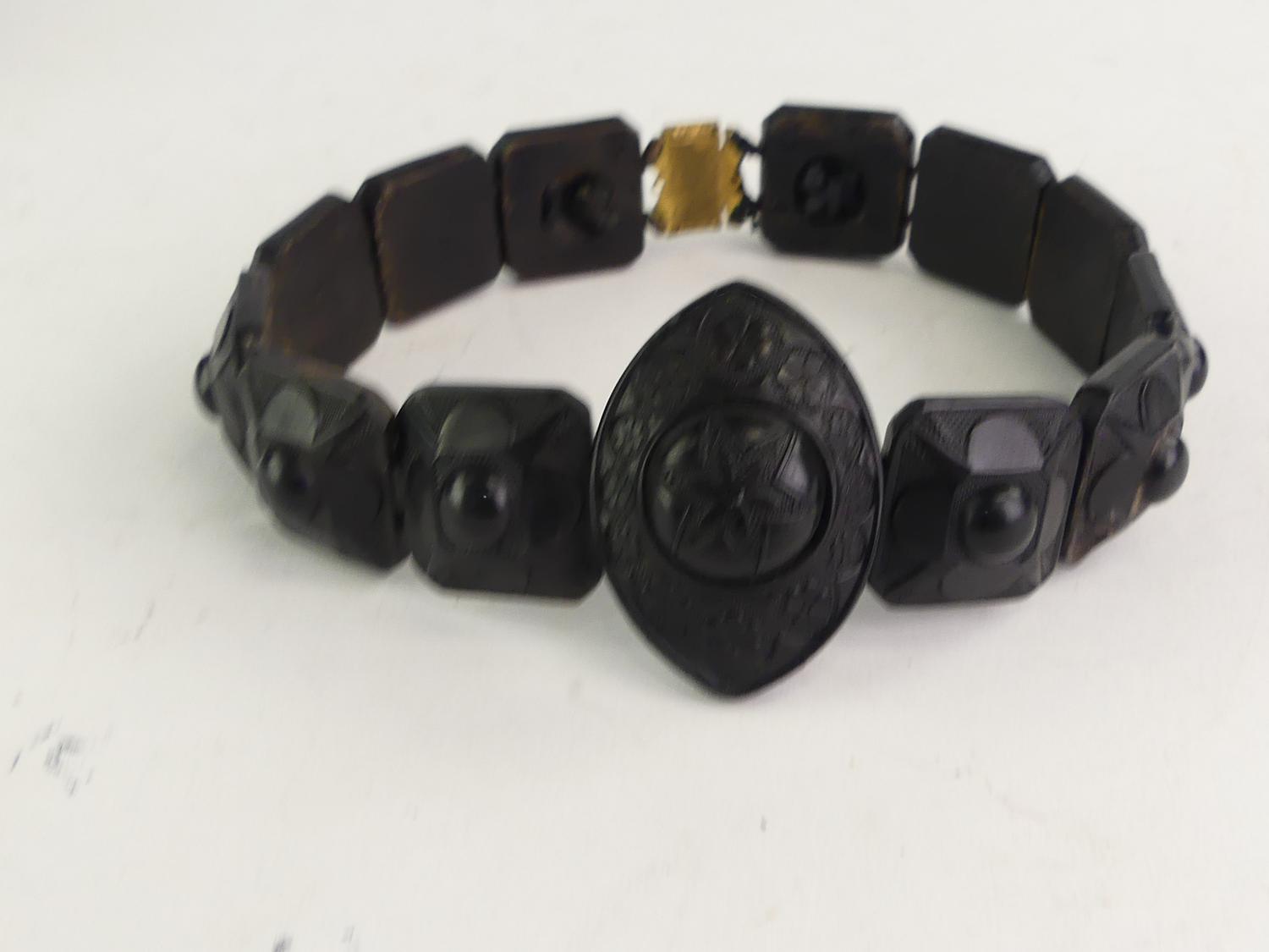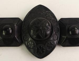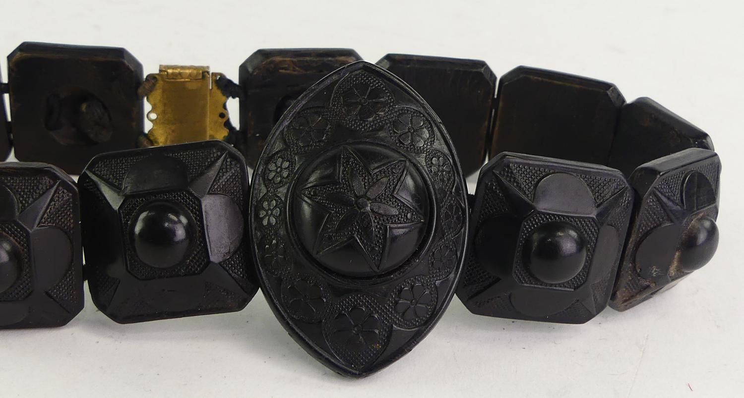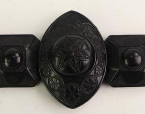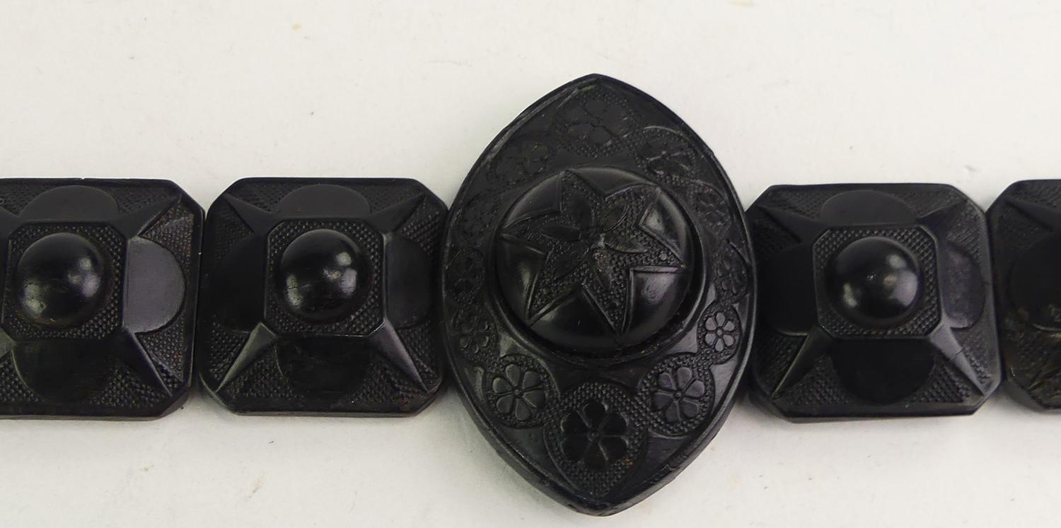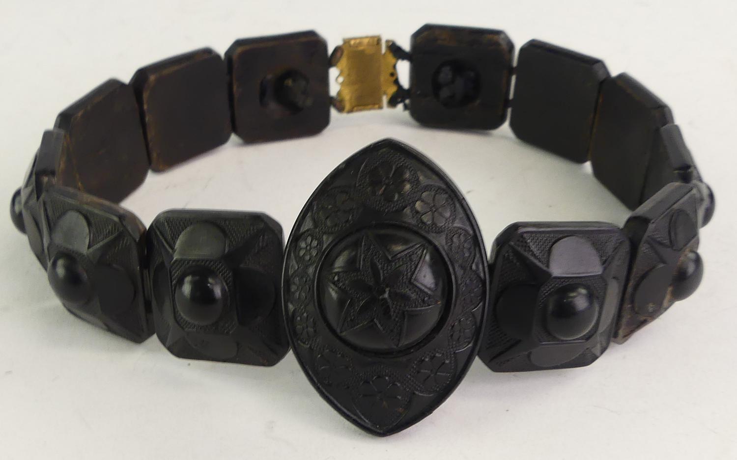 victorian vulcanite choker panel necklace, length 13 1/2"