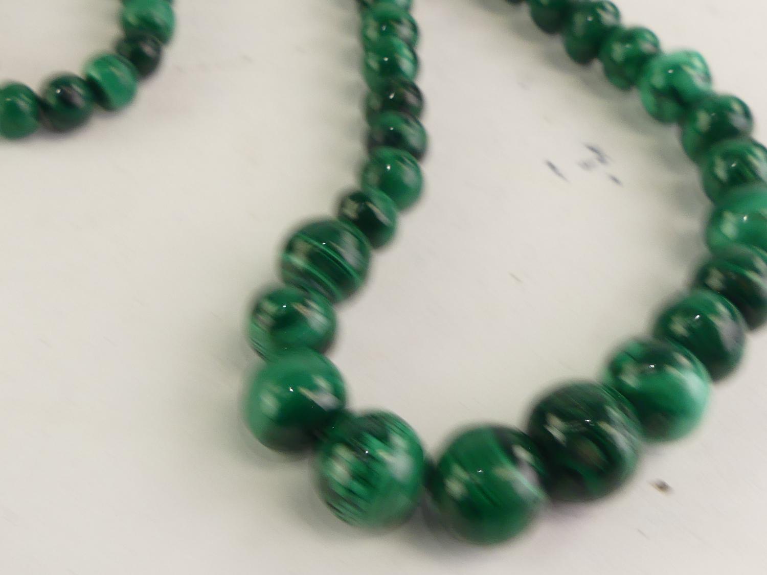malachite bead necklace with cloisonne enamel clasp, length 24