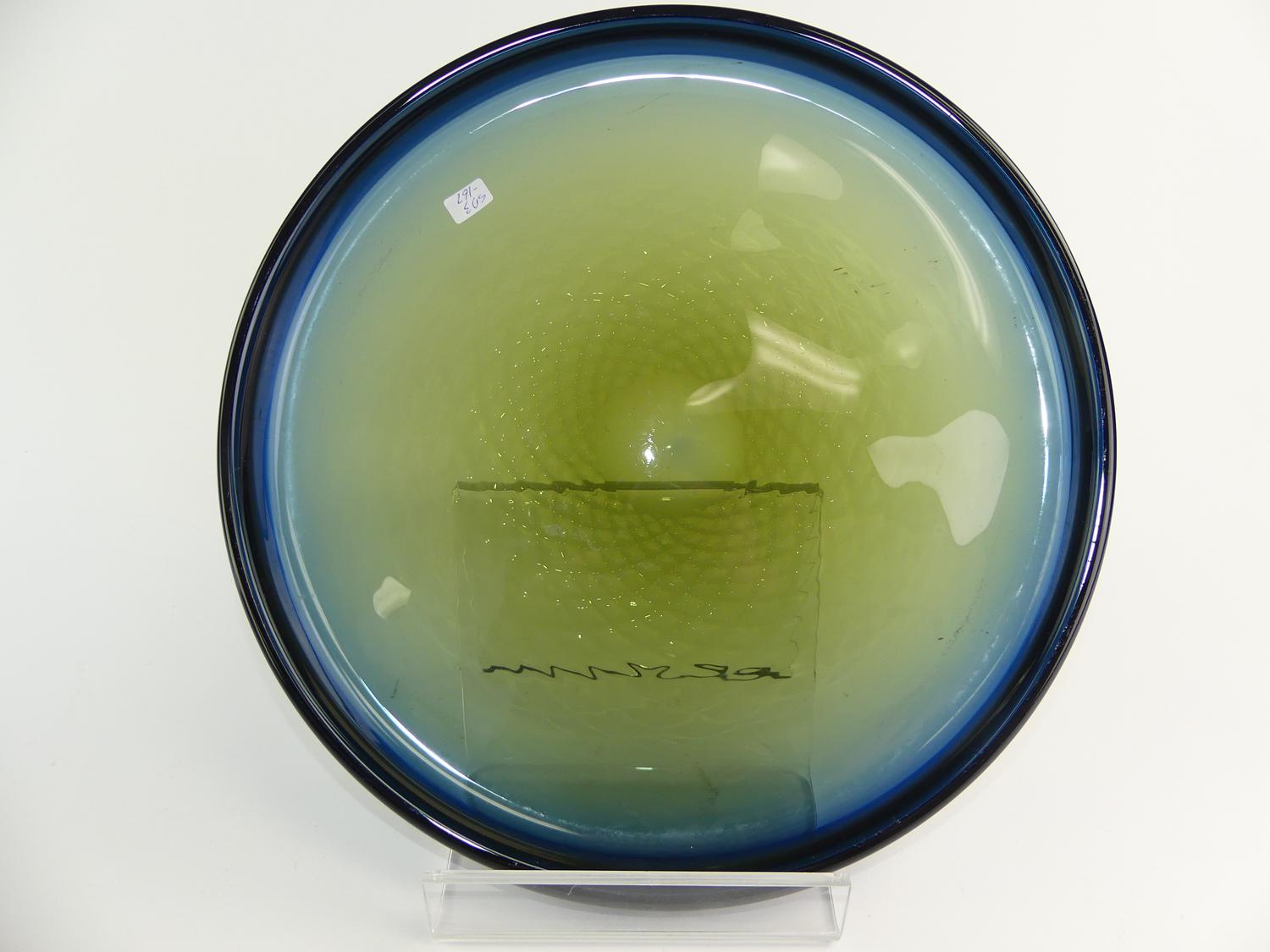 mid century blue glass charger, dia. 14"