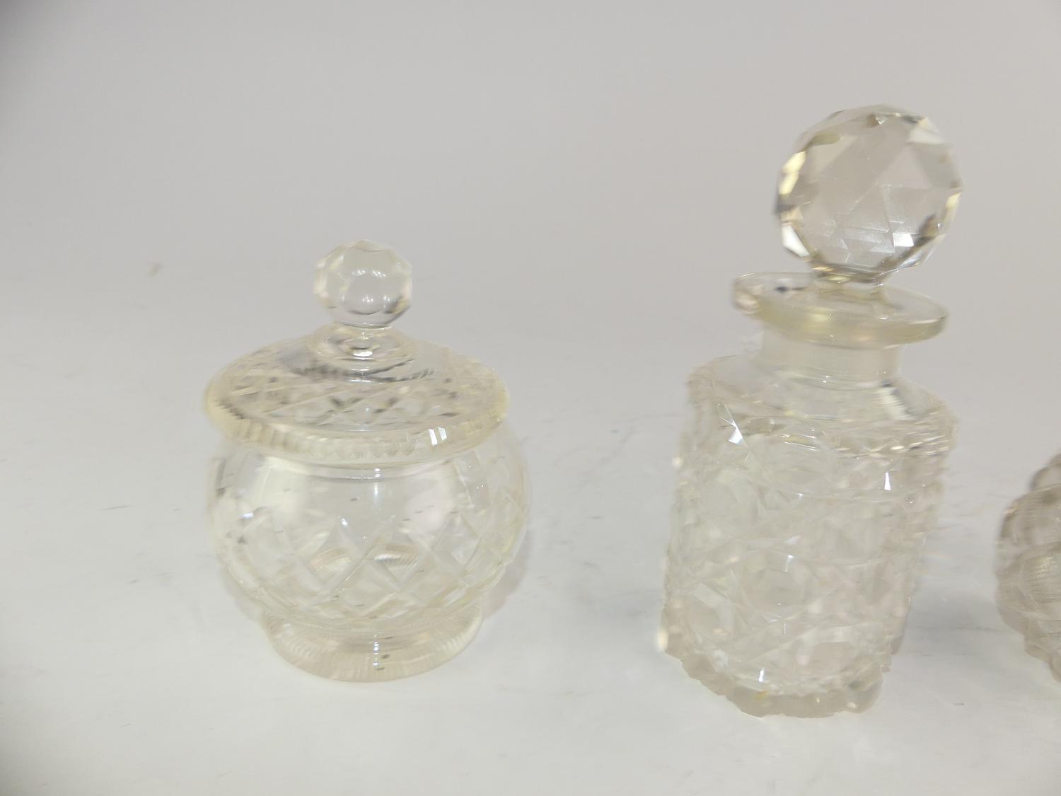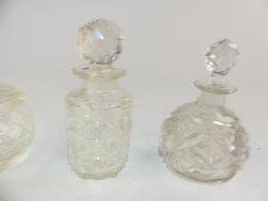 three cut glass dresser bottles