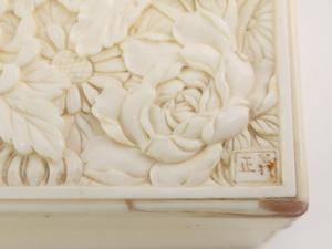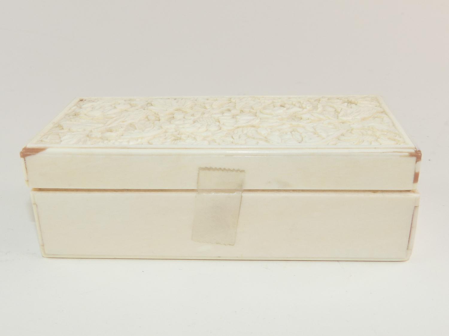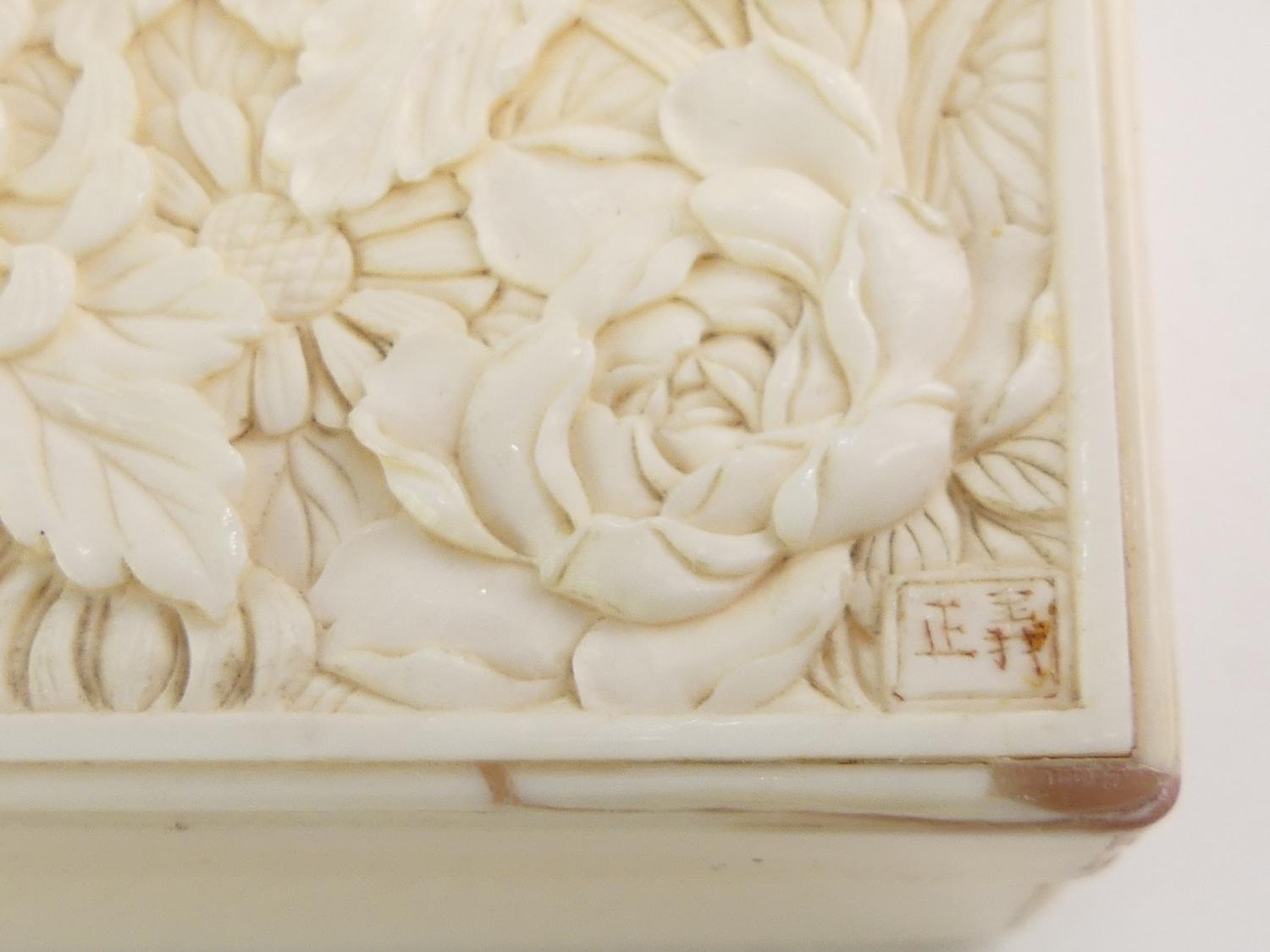 asian carved ivory box, signed, early 20th century, length 4 1/2"