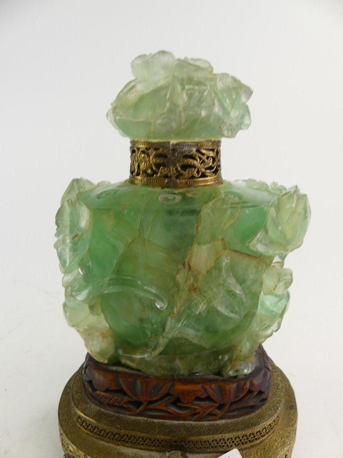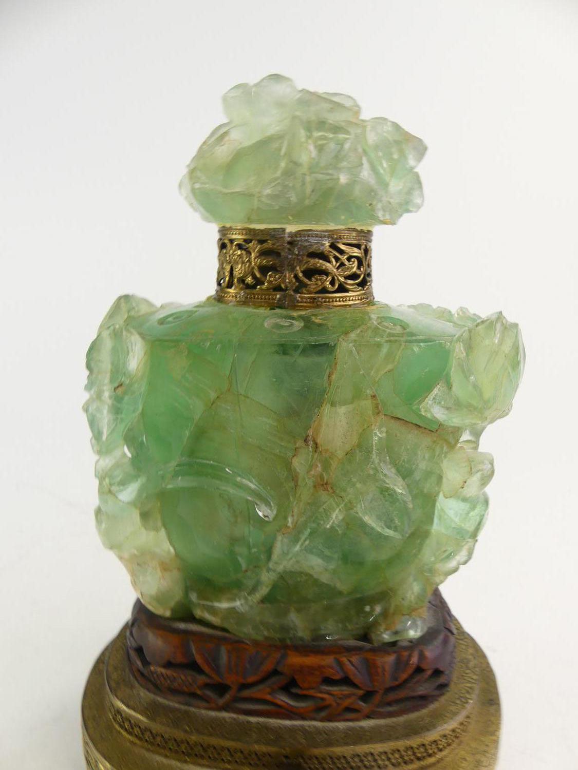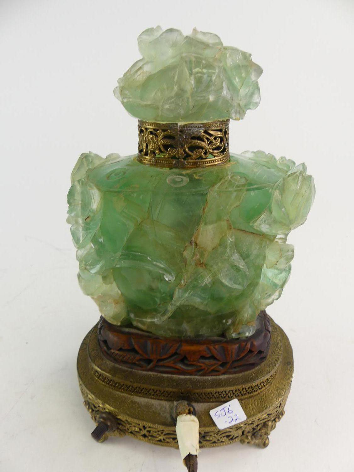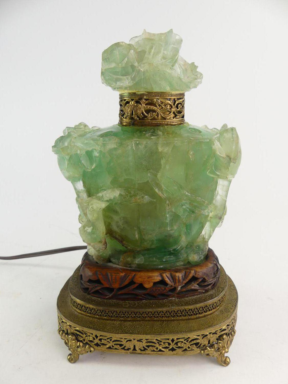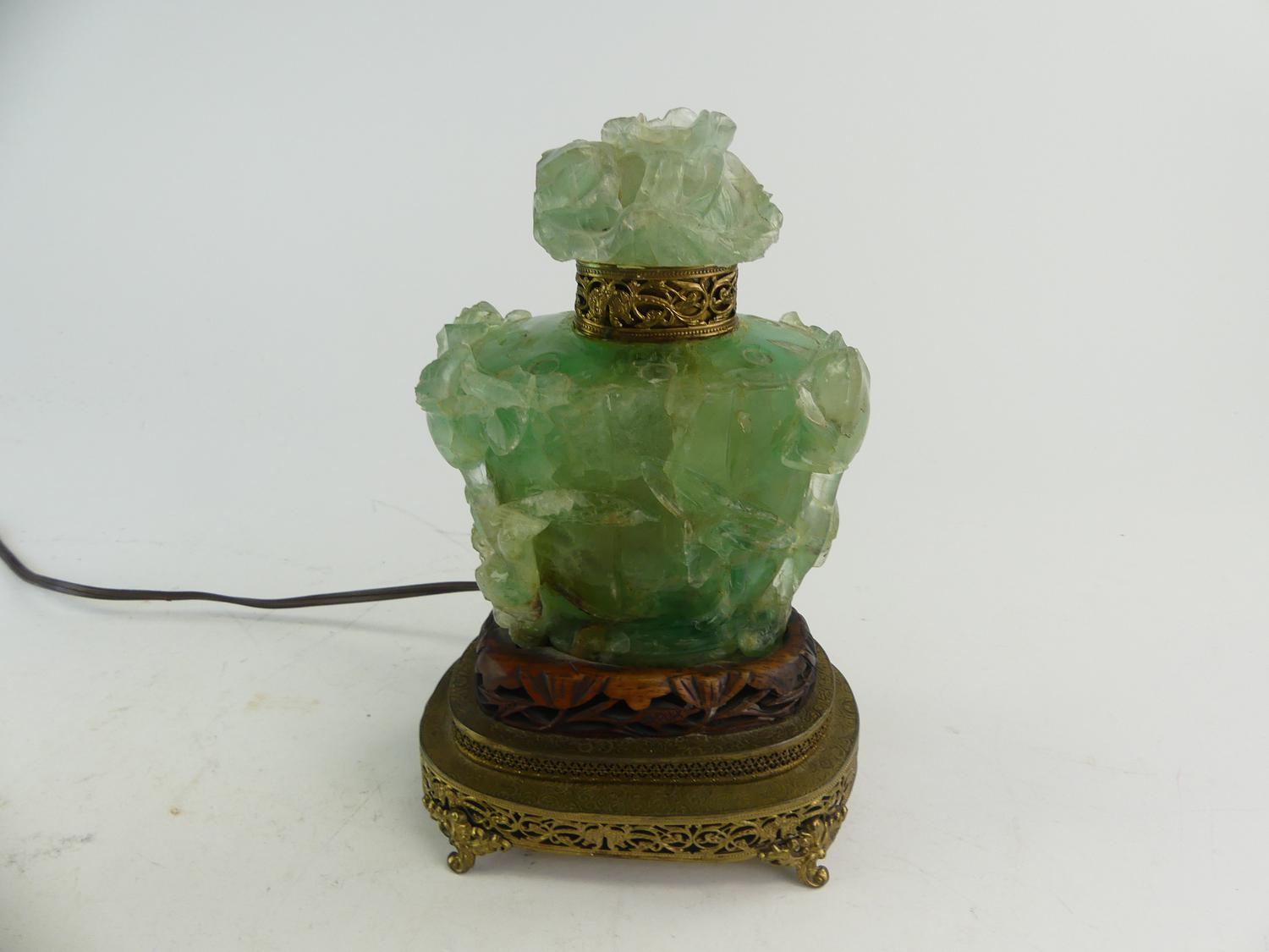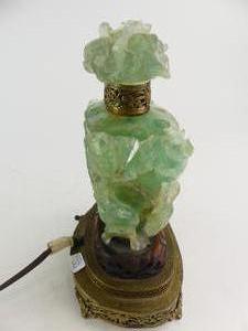 chinese carved jade quartz lamp, early 20th century, ht. 9"
