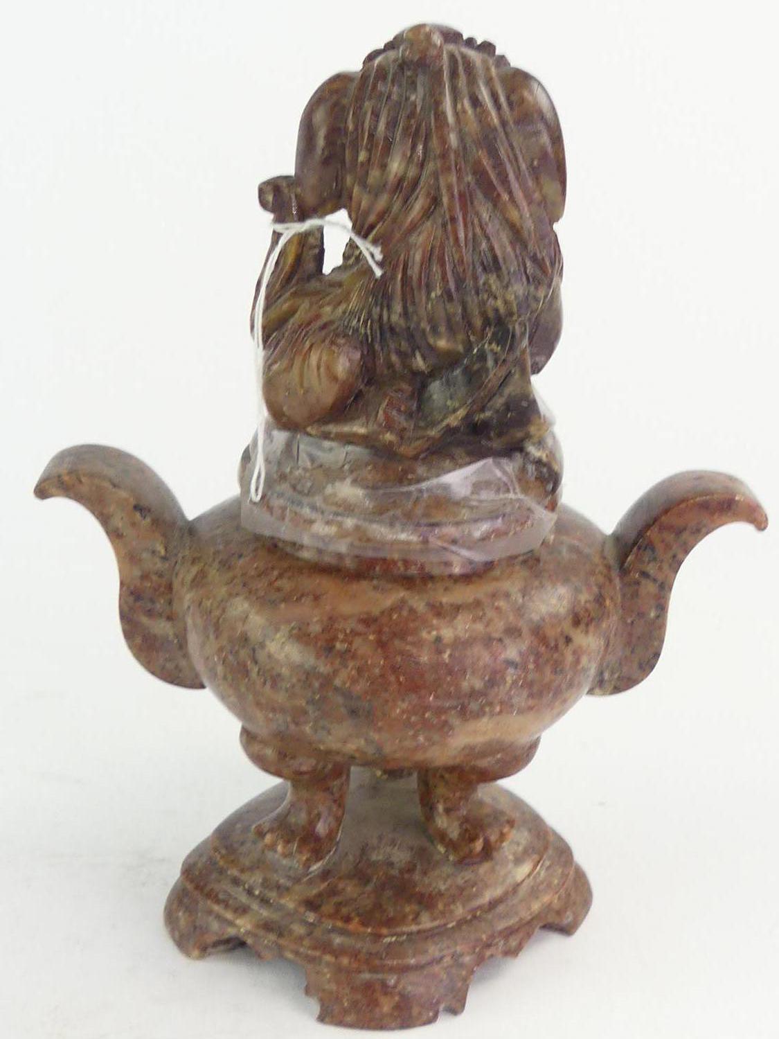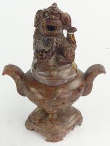 chinese carved hardstone foo-dog incense burner, ht. 7 1/2"