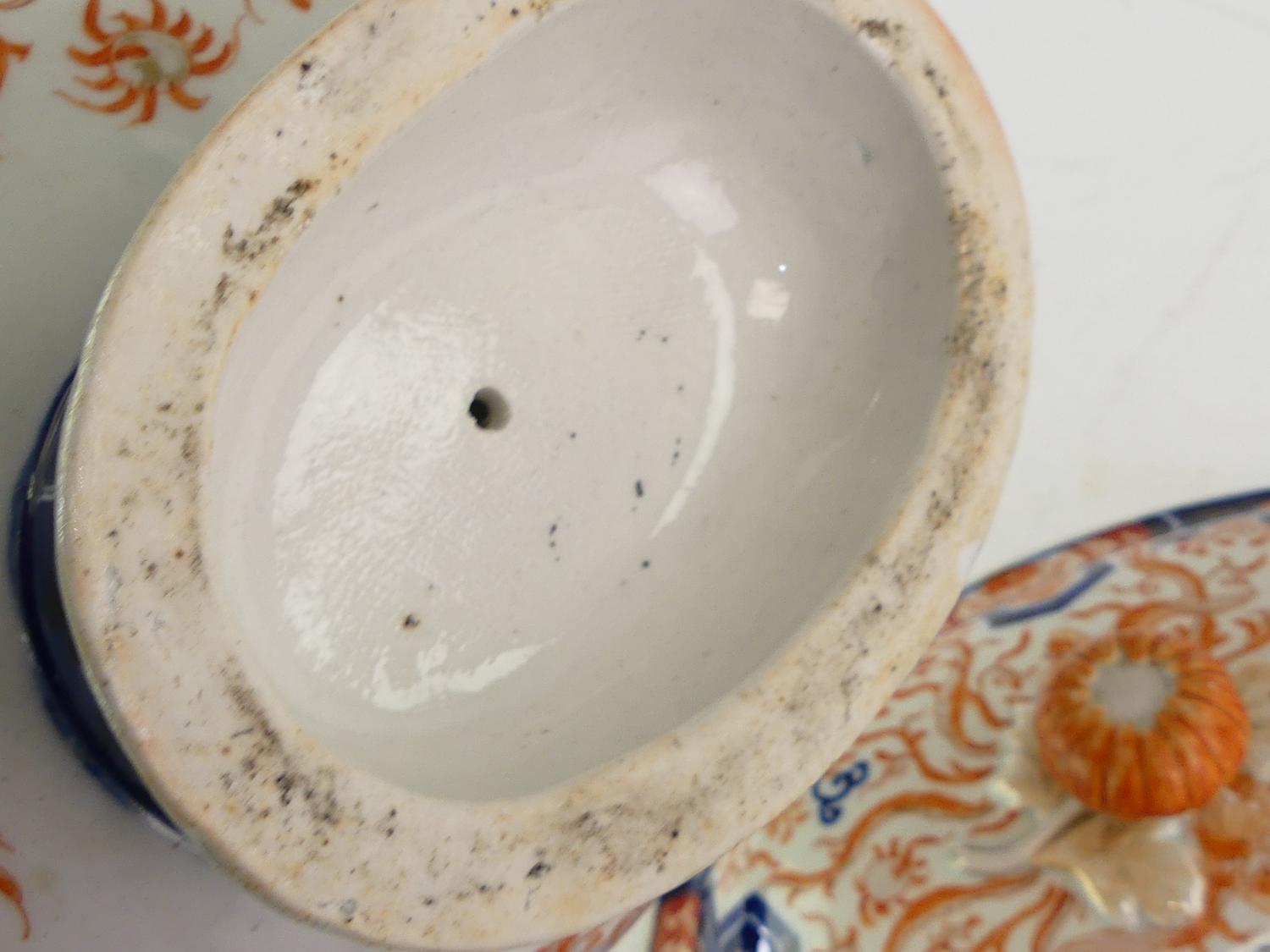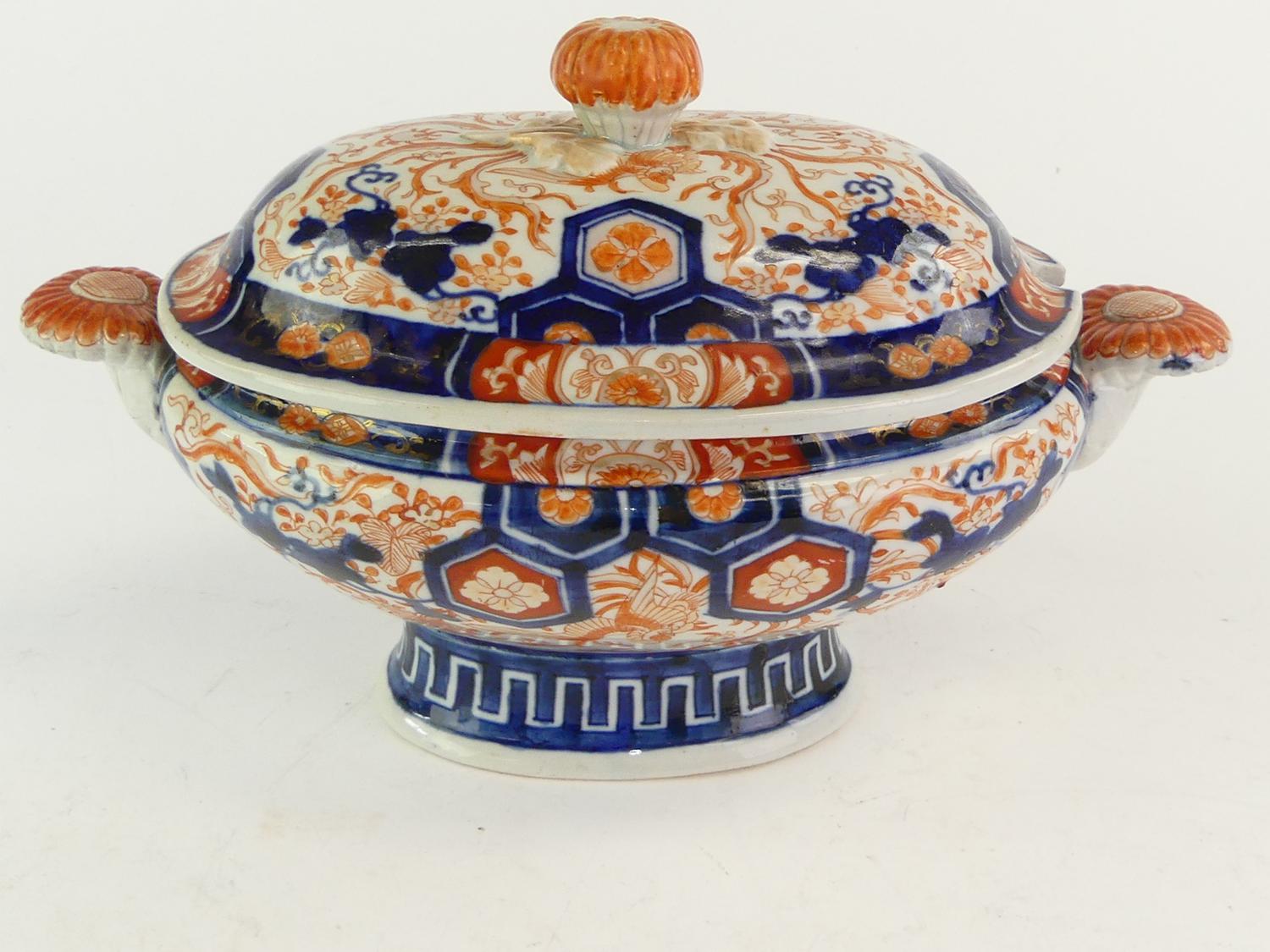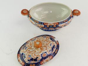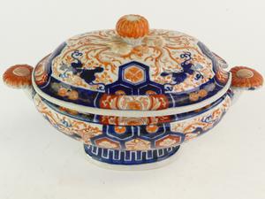 19th century japanese imari crysthanemnum oval tureen, 12"