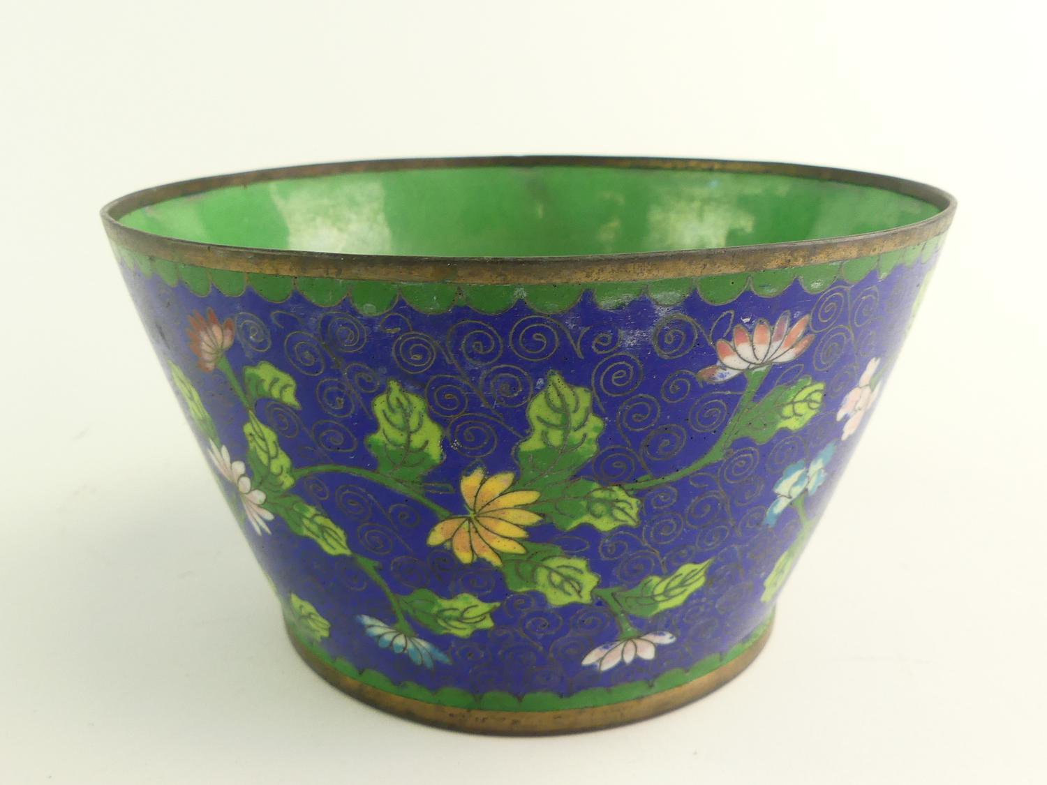 chinese cloisonnee enamel bowl, early 20th century 4" x 7"