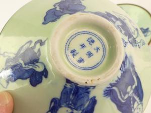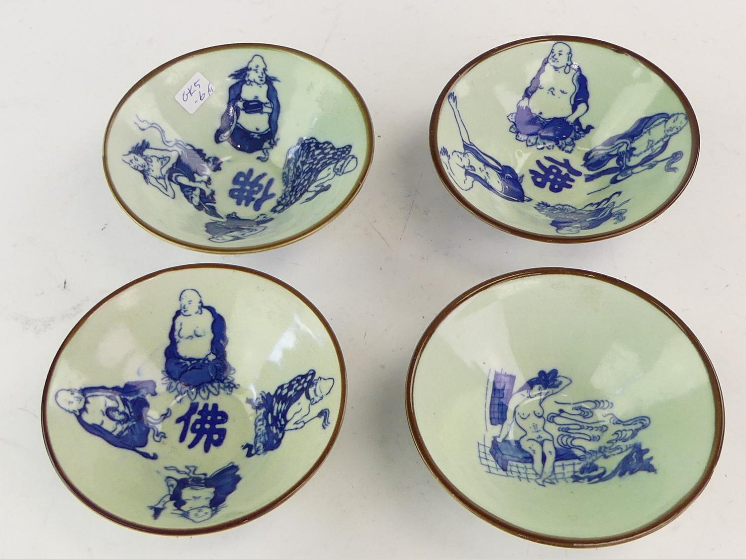 four chinese blue & white bowls