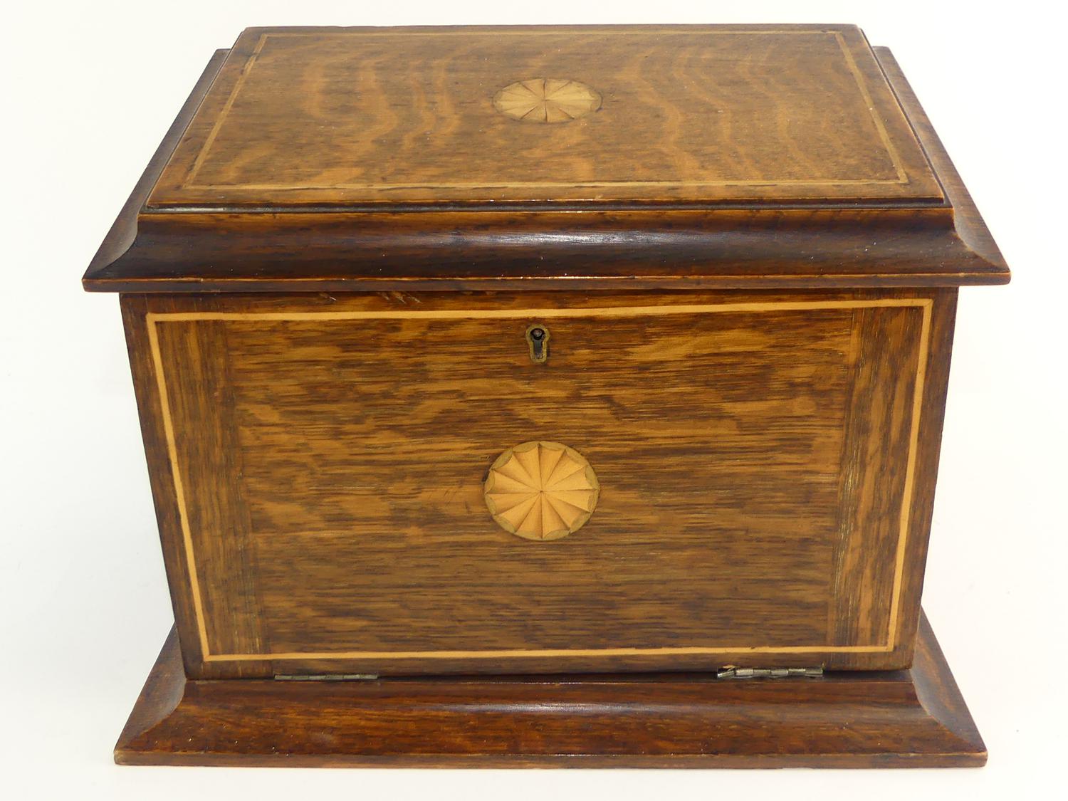 inlaid oak letterbox, early 20th 9 1/2" x 12" x 8"