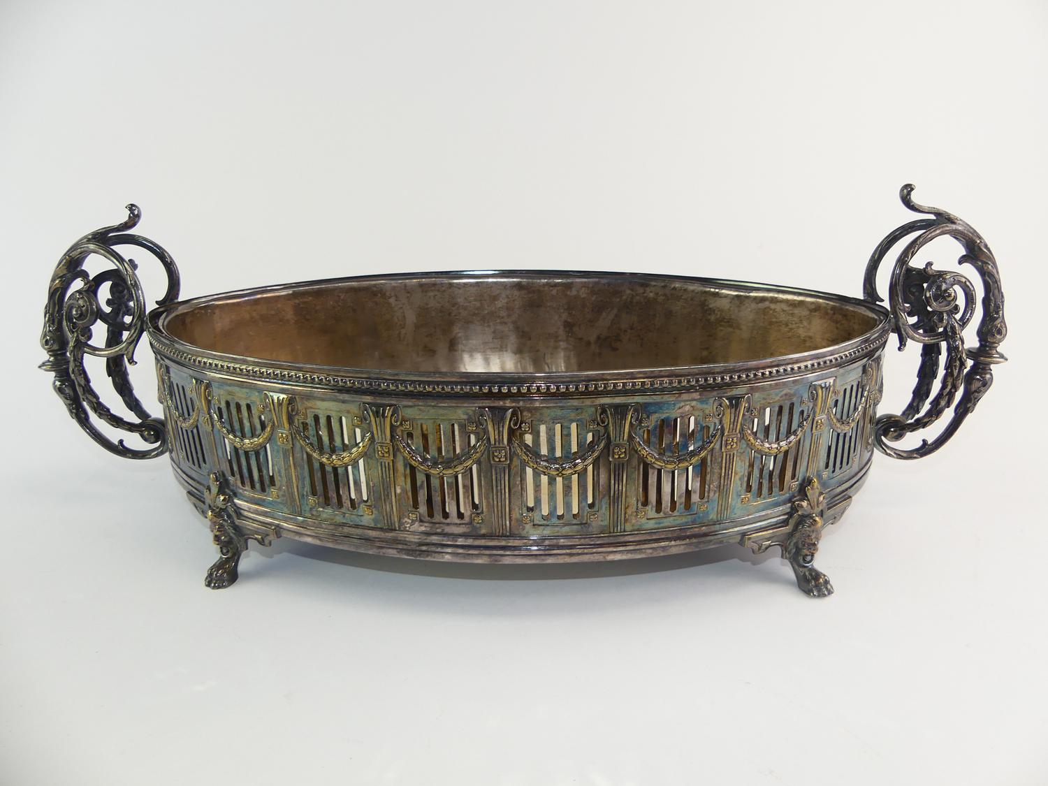 early 20th century silver plate footed jardiniere, length 19 1/2"