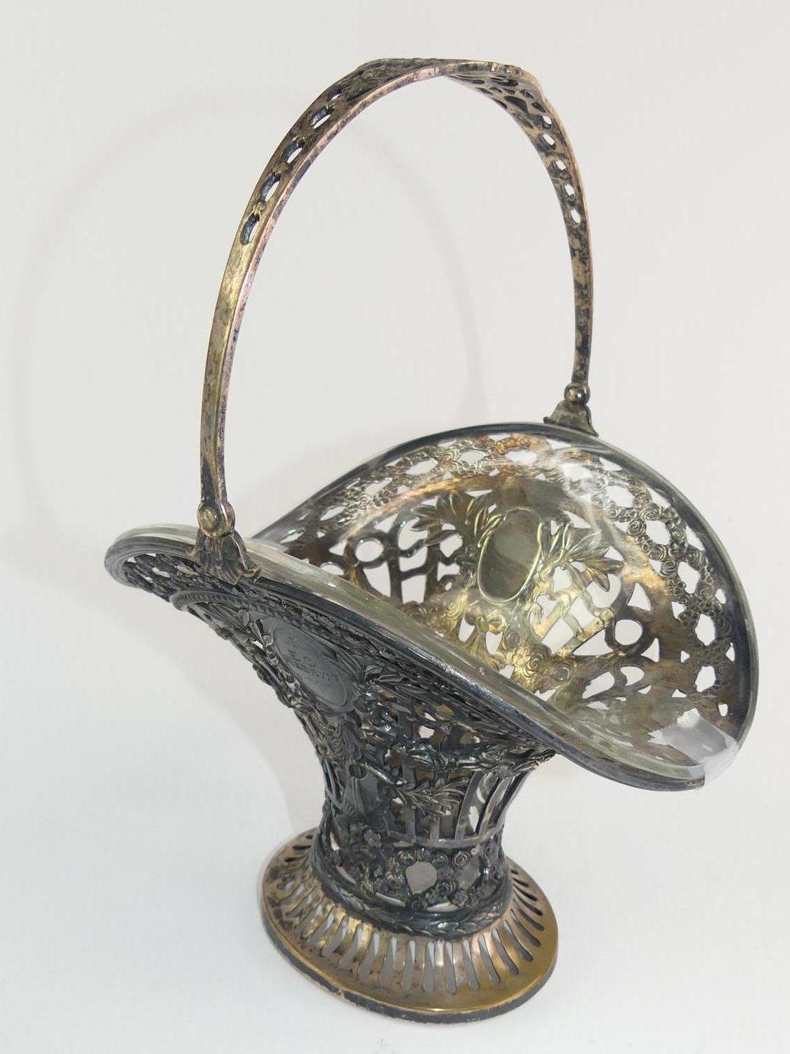 wmf glass lined silver plate basket, awarded to the 1st place driving 1915, ht 10"