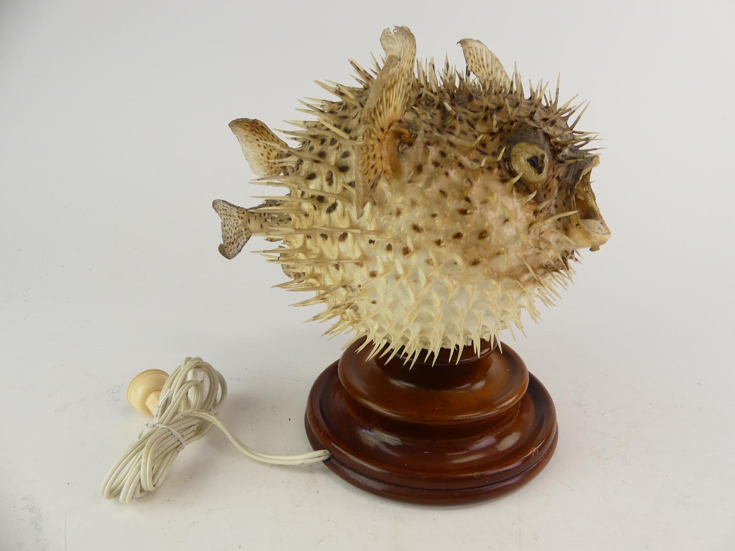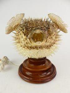 vintage puffer fish table lamp