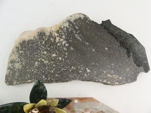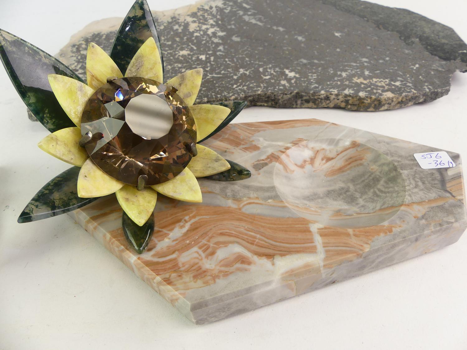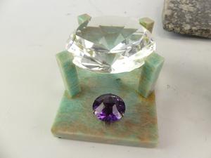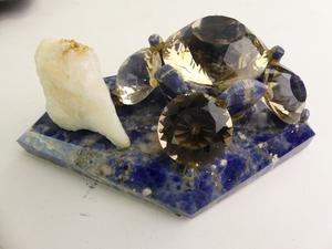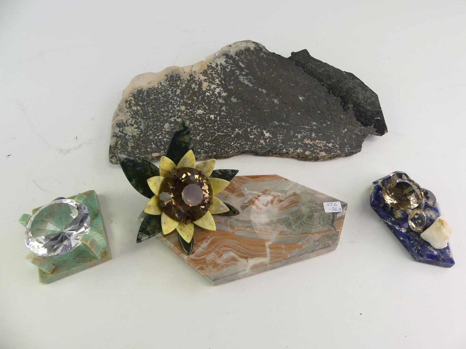 three crystal mounted mineral specimen desk ornaments, 9" and smaller