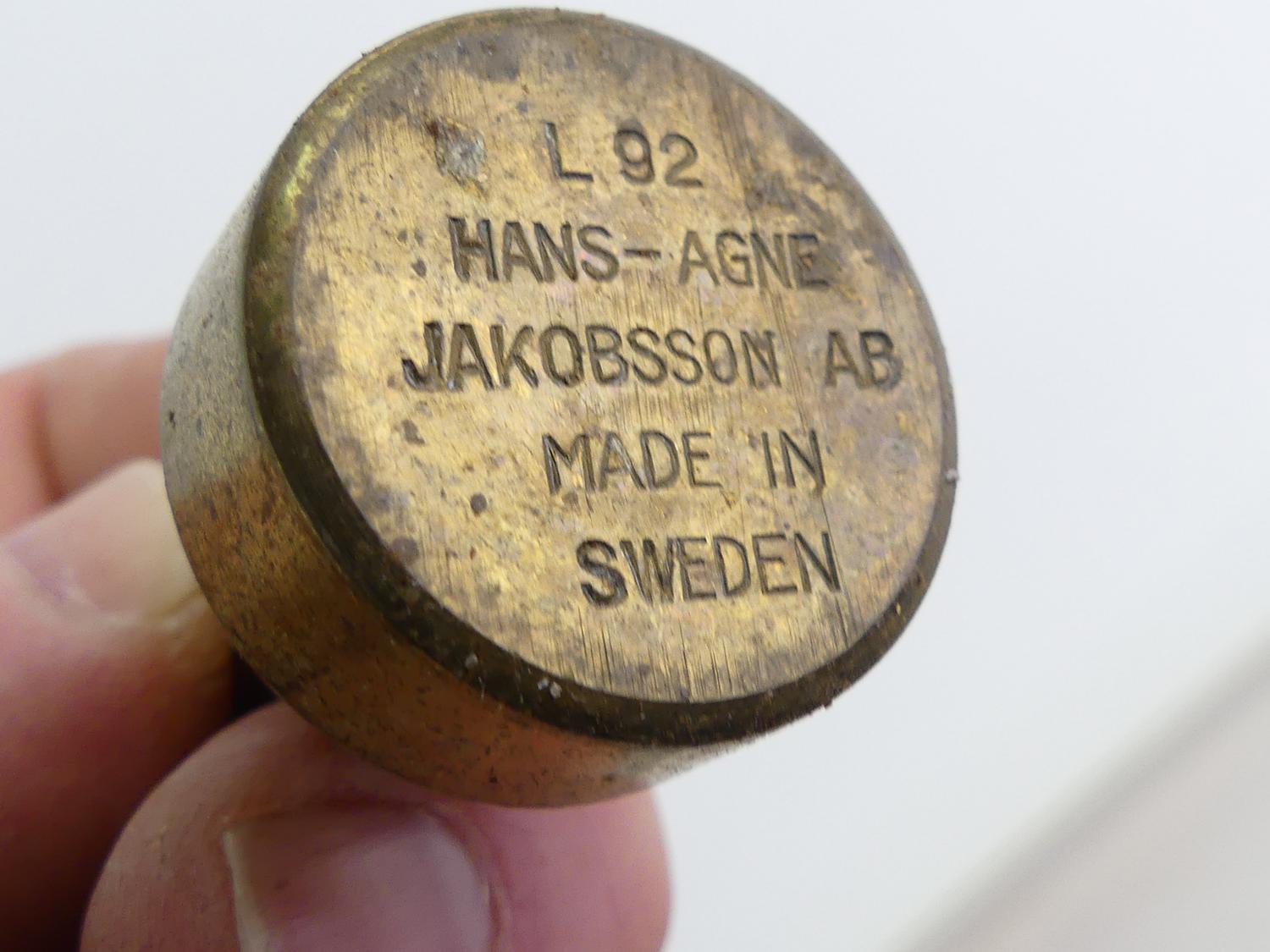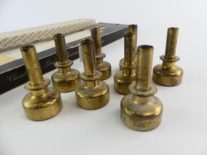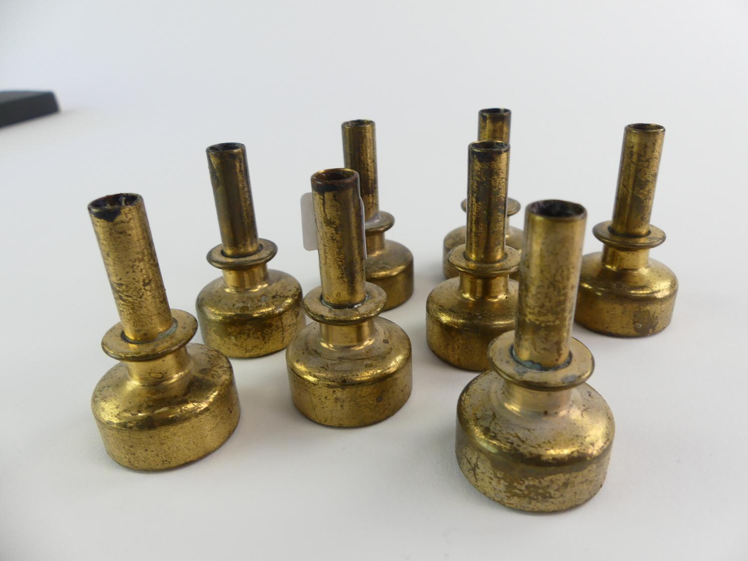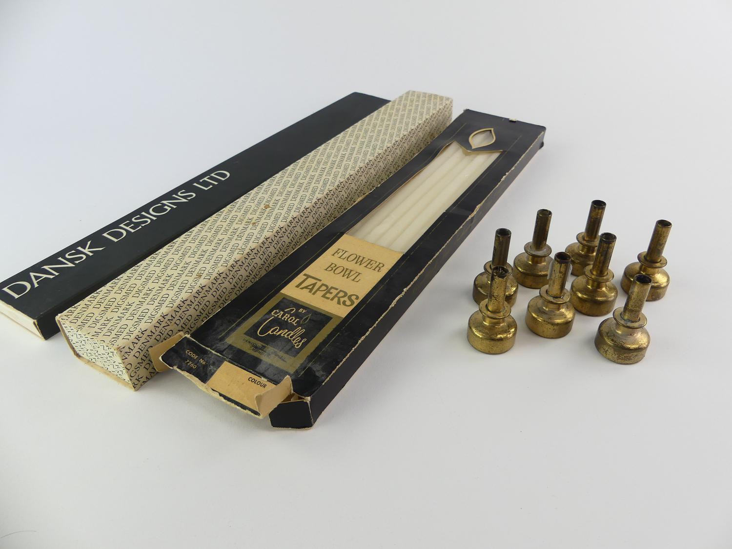 eight hans agne jakobsson 1960's brass candle holders and candles, ht. 2 1/4"