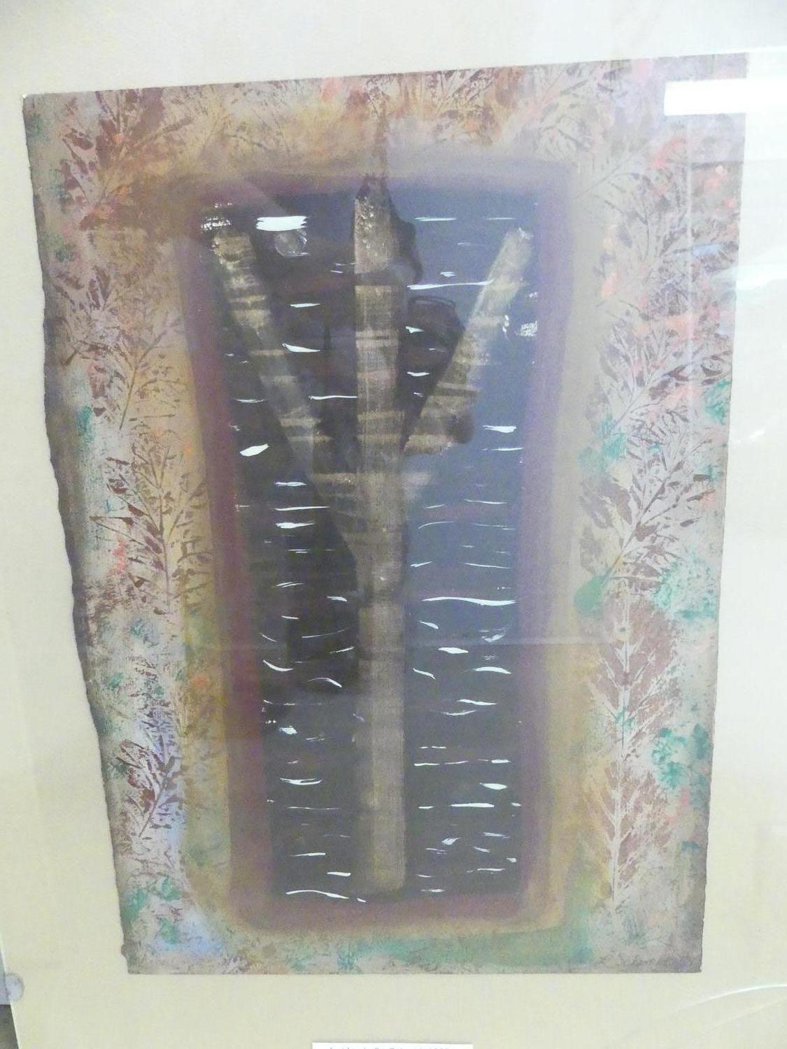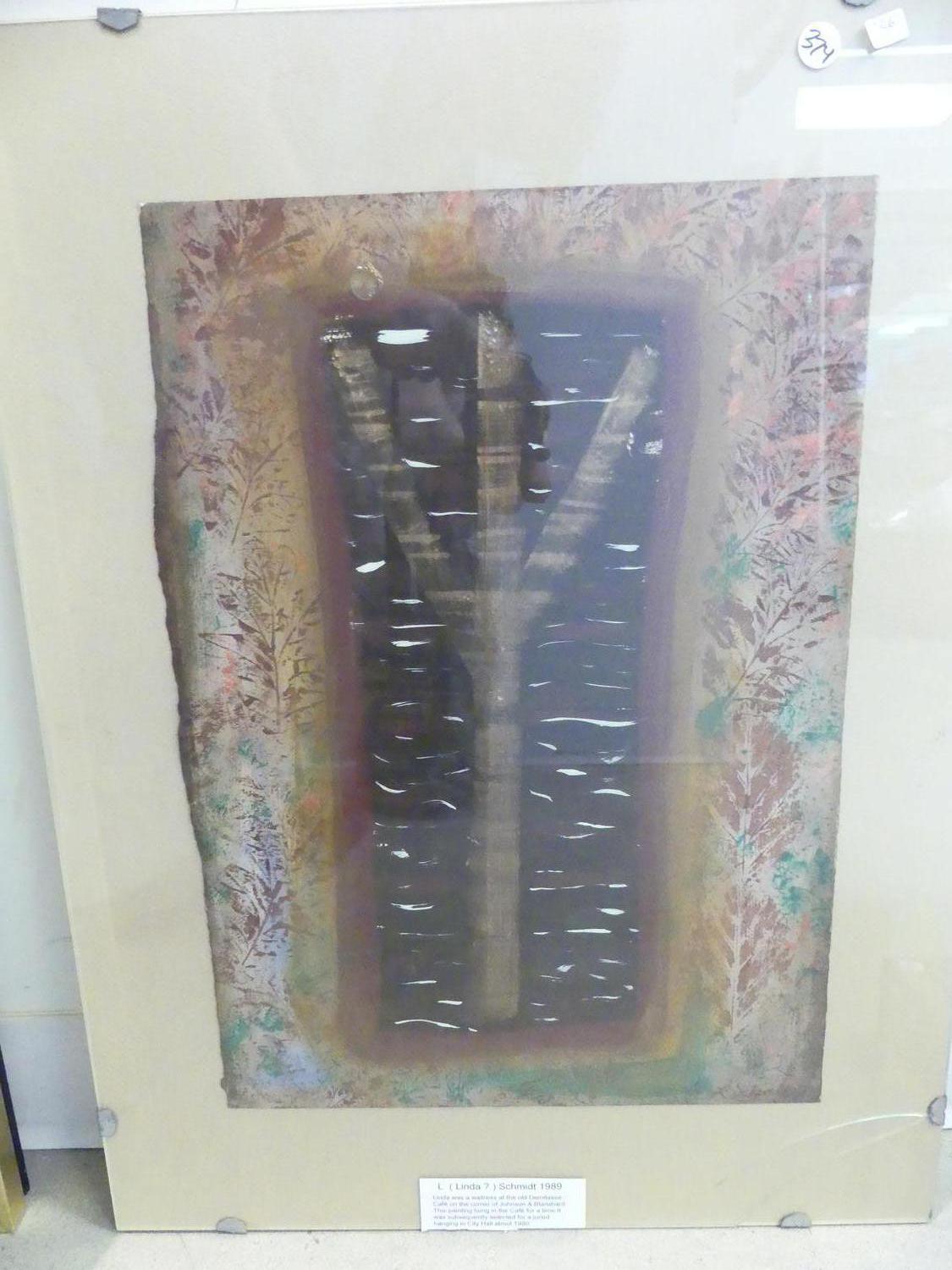 l.schmidt, mixed media on paper, d.1989, 20" x 14", "abstract"