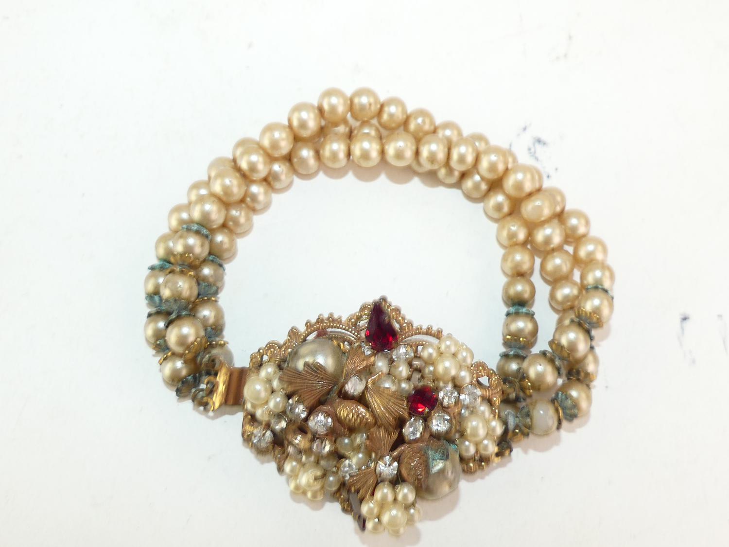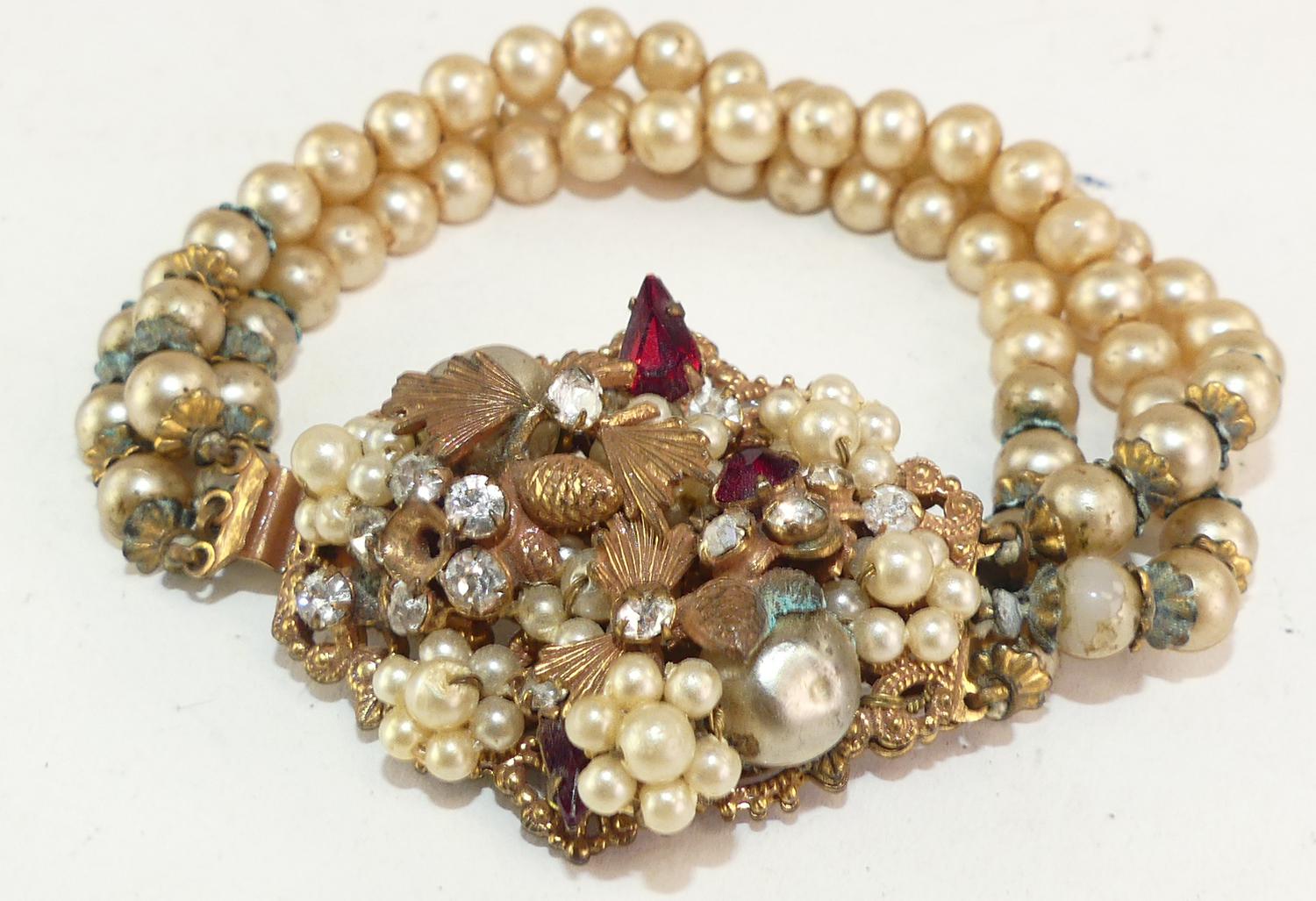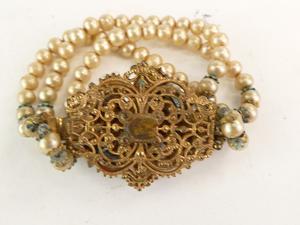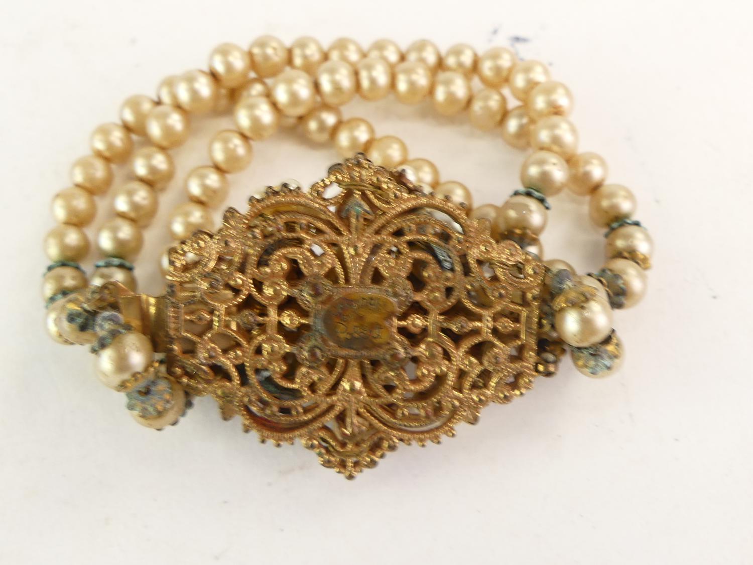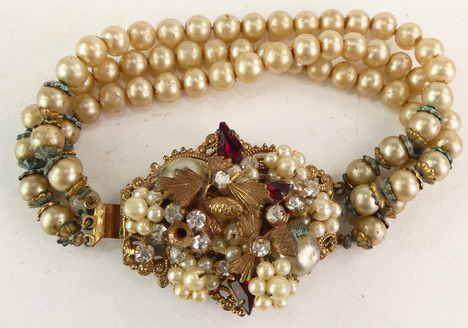 vintage orignal by robert signed rhinestone faux pearl bracelet, condition noted