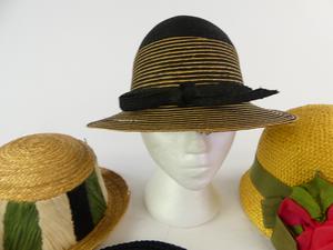 7 vintage ladies, cloche, turban and peach basket hats
