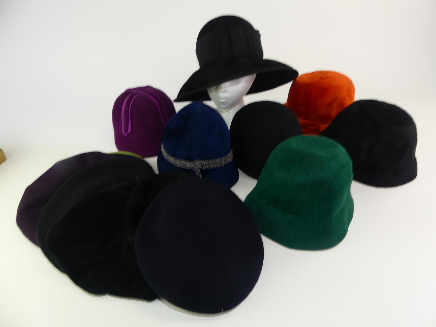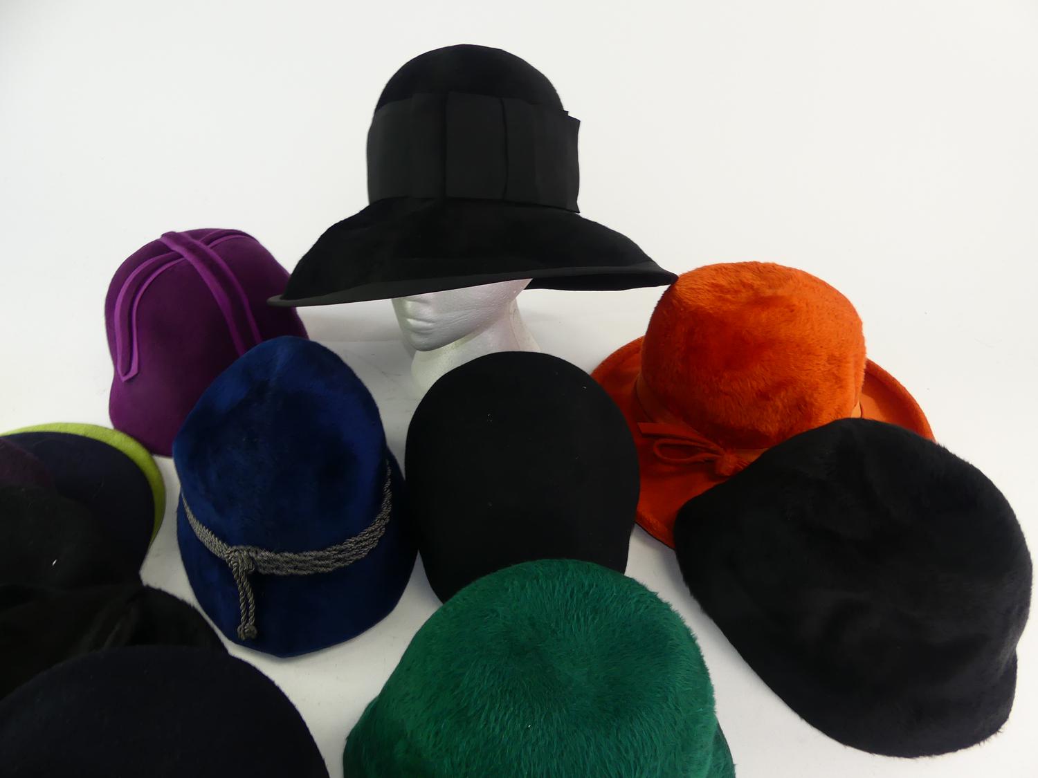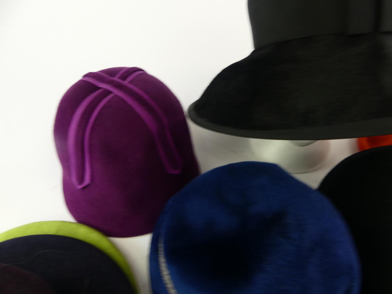 large lot of vintage cartwheel and mushroom felt hats, 1960s