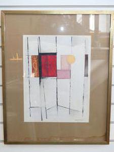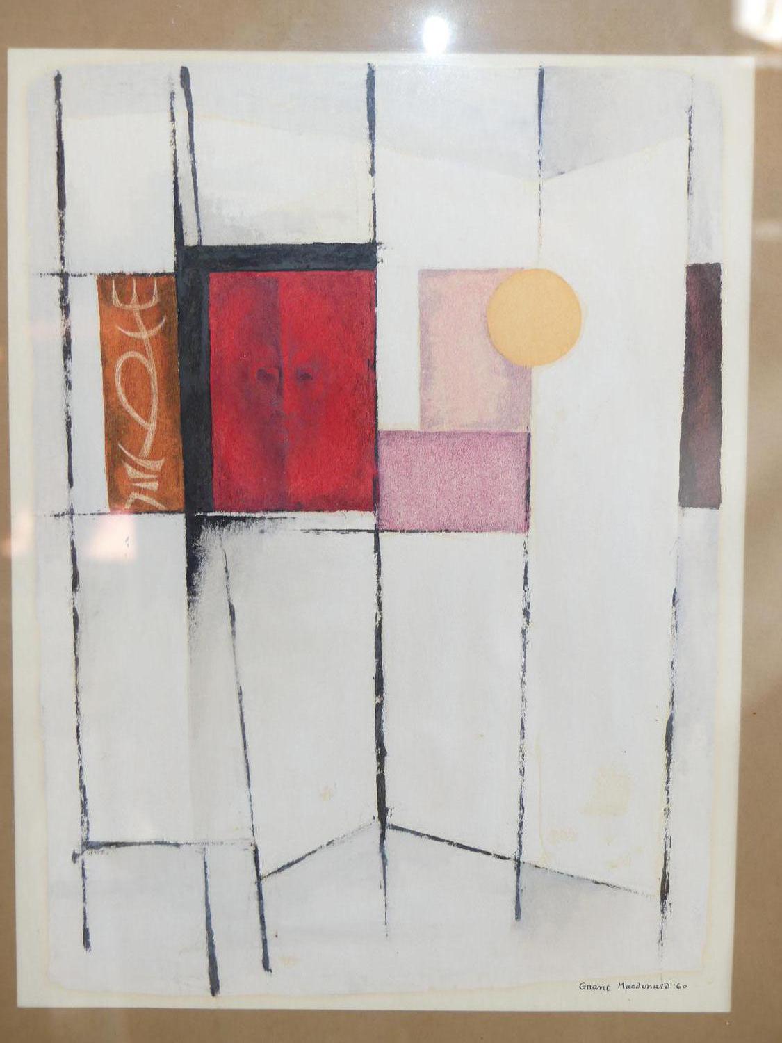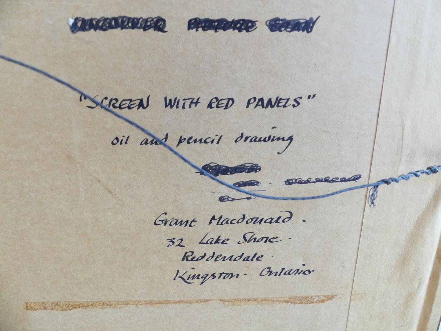grant kenneth macdonald (1909-1987), oil and pencil drawing dated 1960, 13 1/2" x 10", "screen with red"