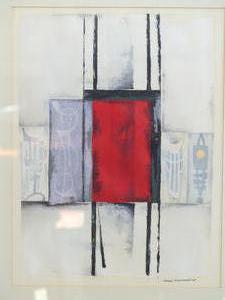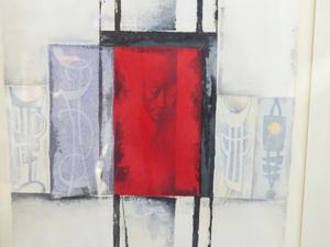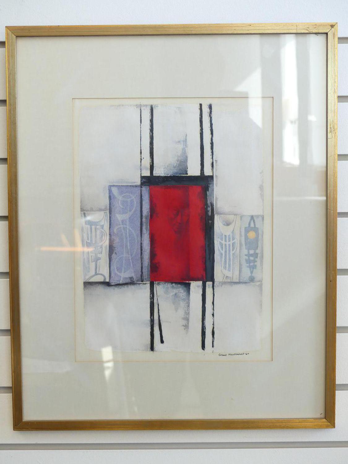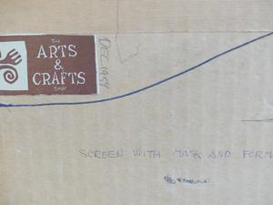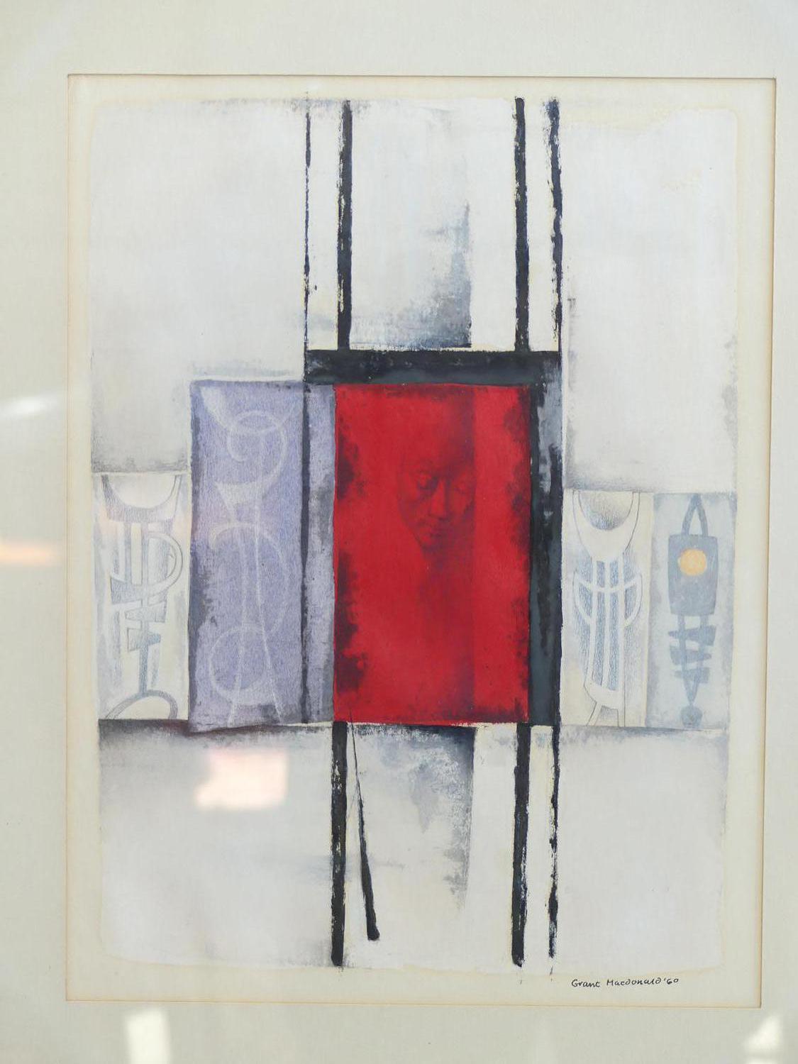 grant kenneth macdonald (1909-1987), oil and pencil drawing dated 1960, 13 1/2" x 10", "screen with mask and forms"