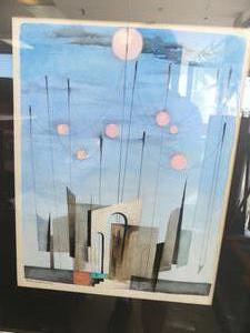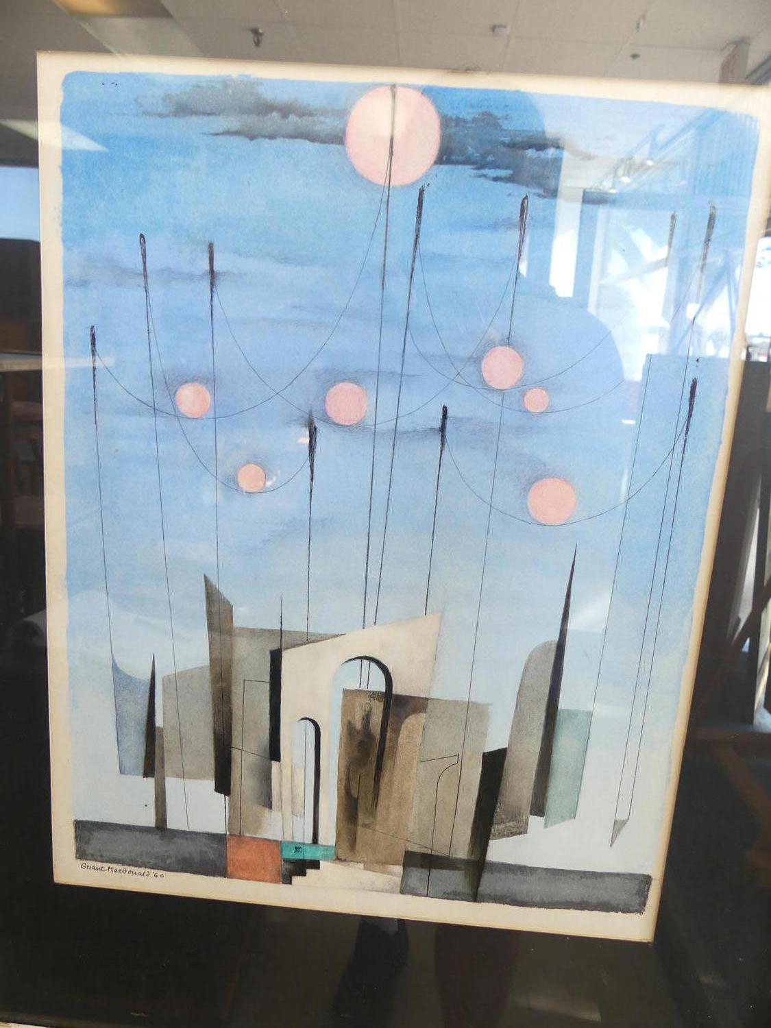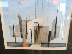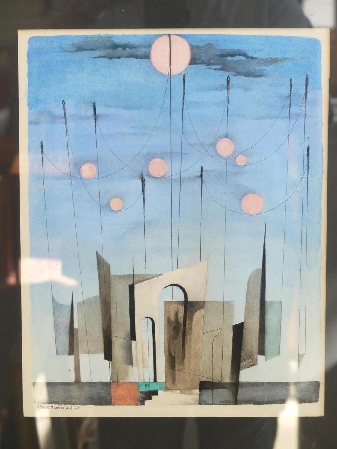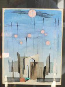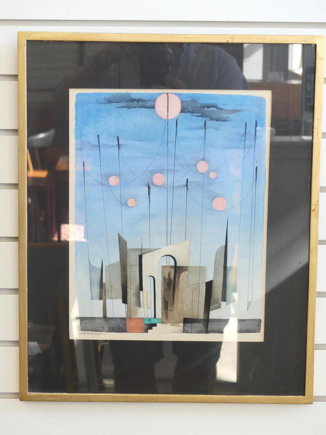 grant kenneth macdonald (1909-1987), oil and pencil drawing dated 1960, 14" x 11", "screen against sky"