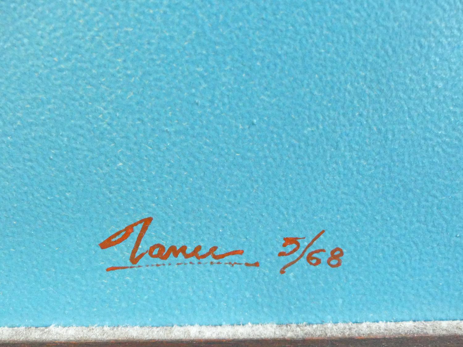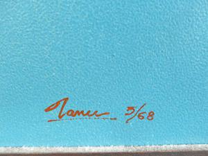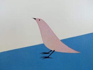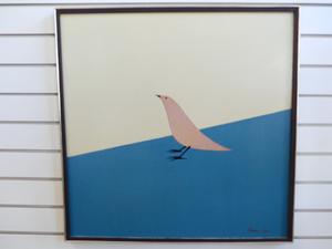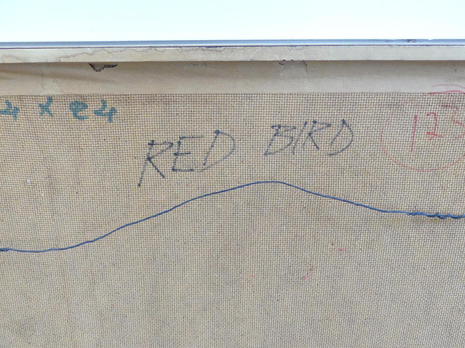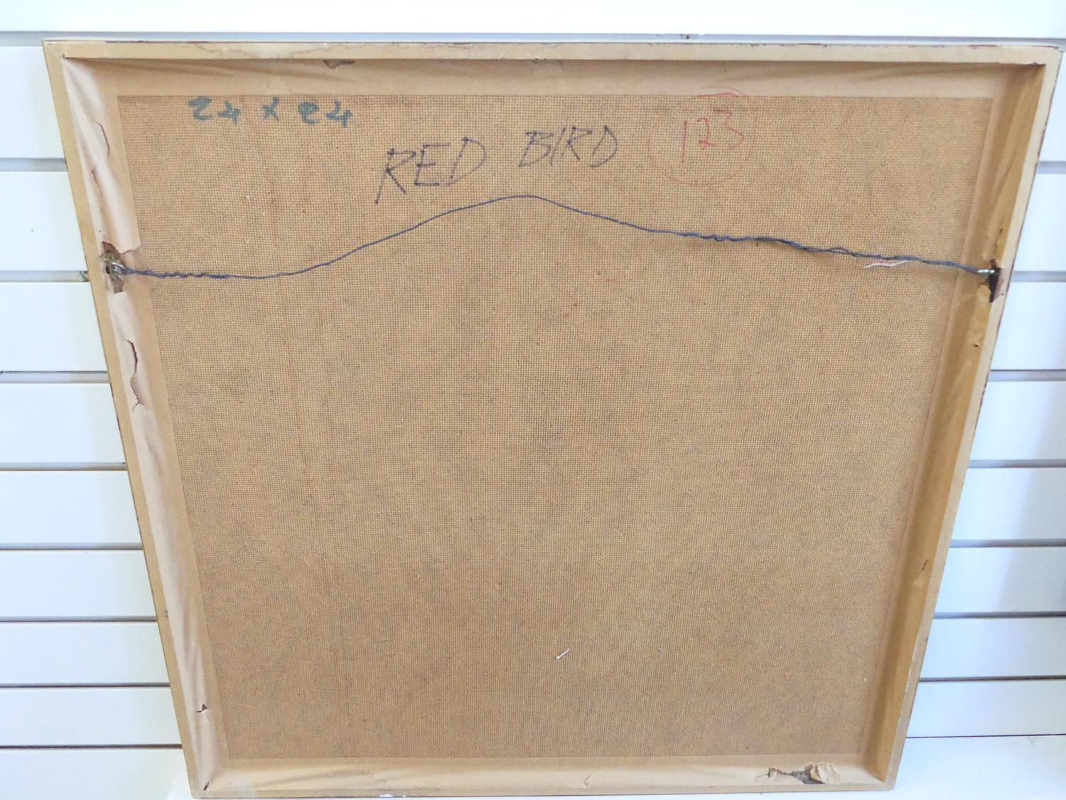 indistinctly signed mixed media oil on board, dated 5/68, 24" x 24", "red bird"