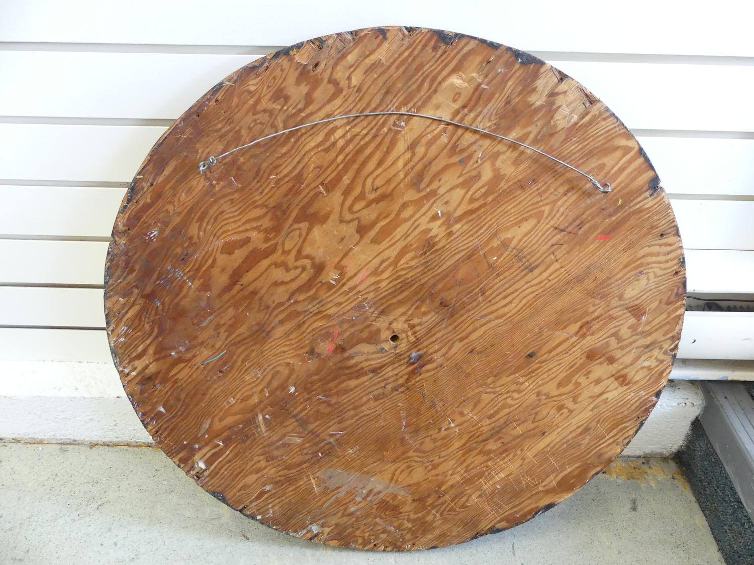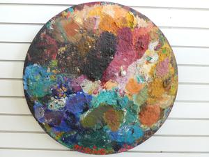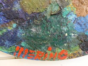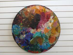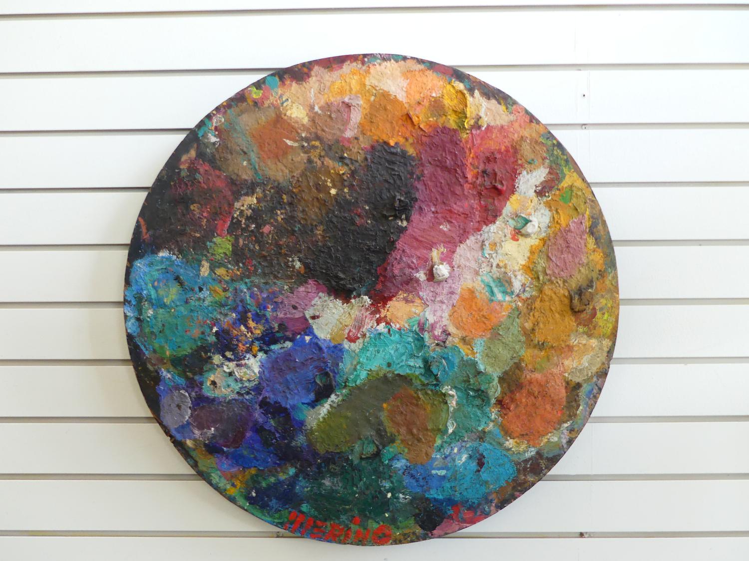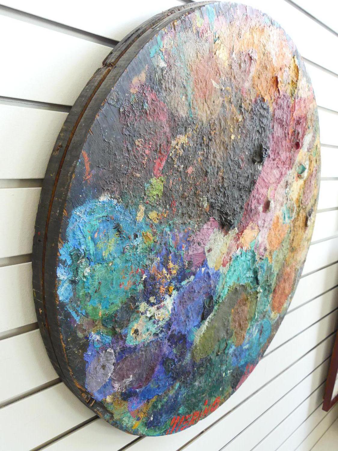 luis merino (b.1942), oil on wood, dia. 24", "palette composition"