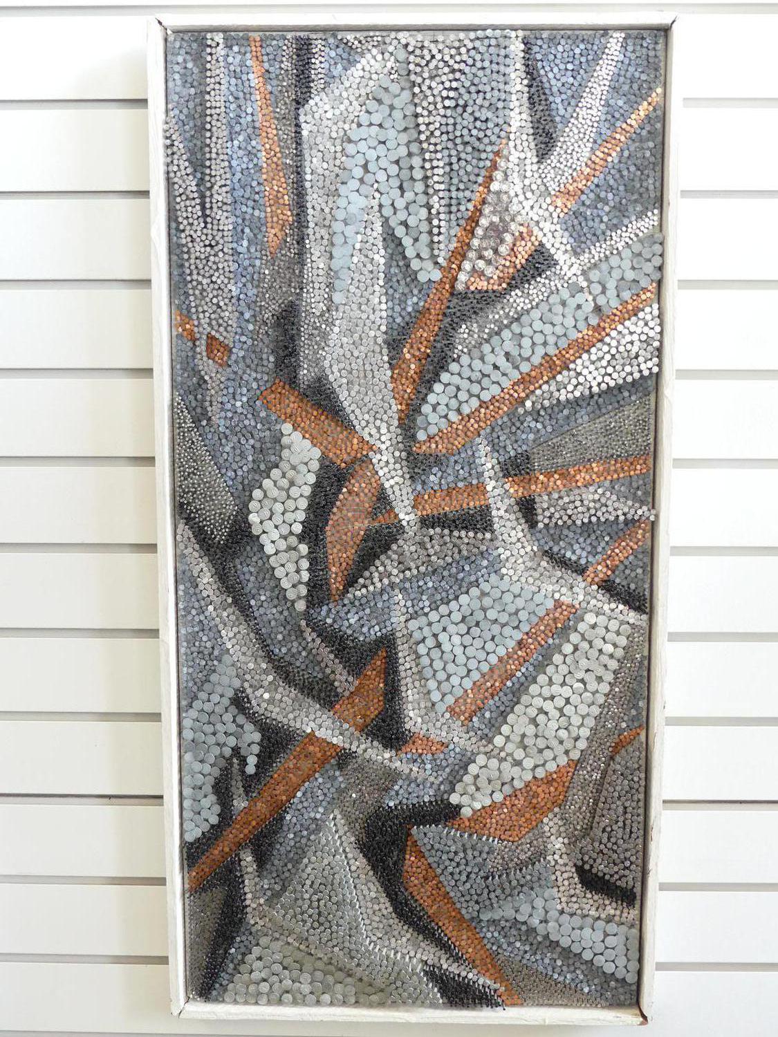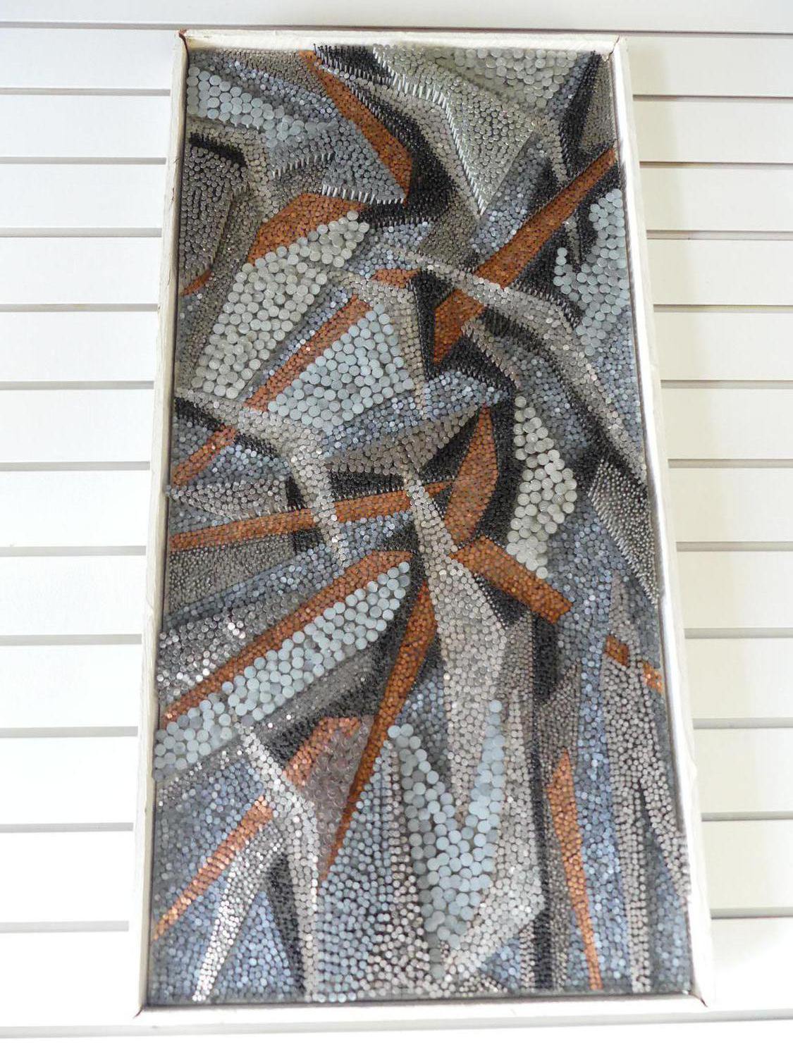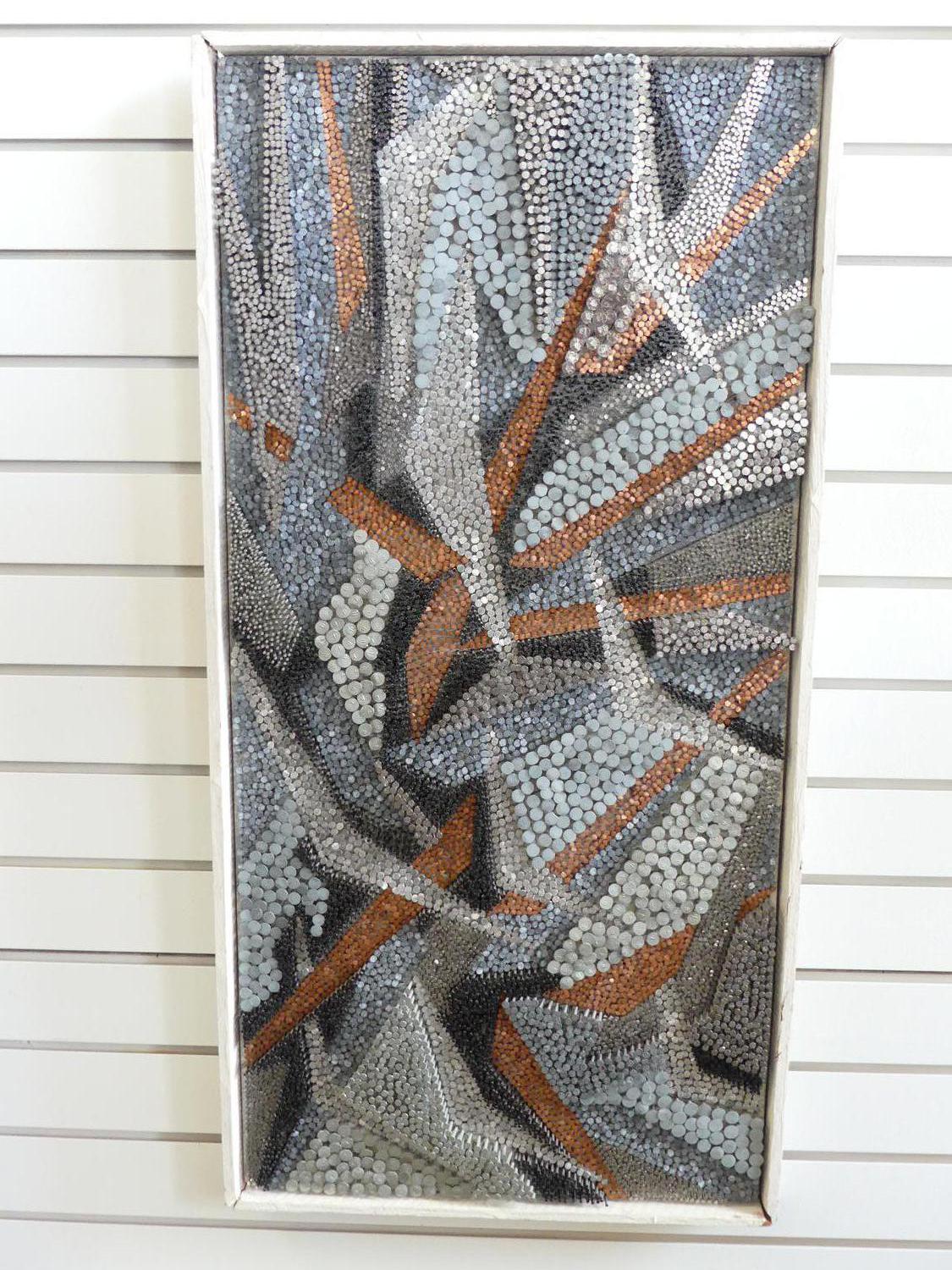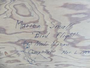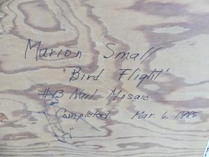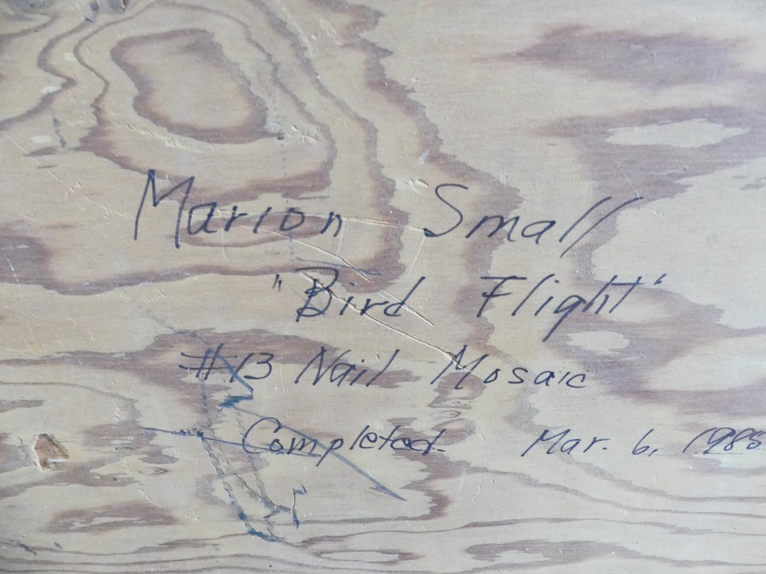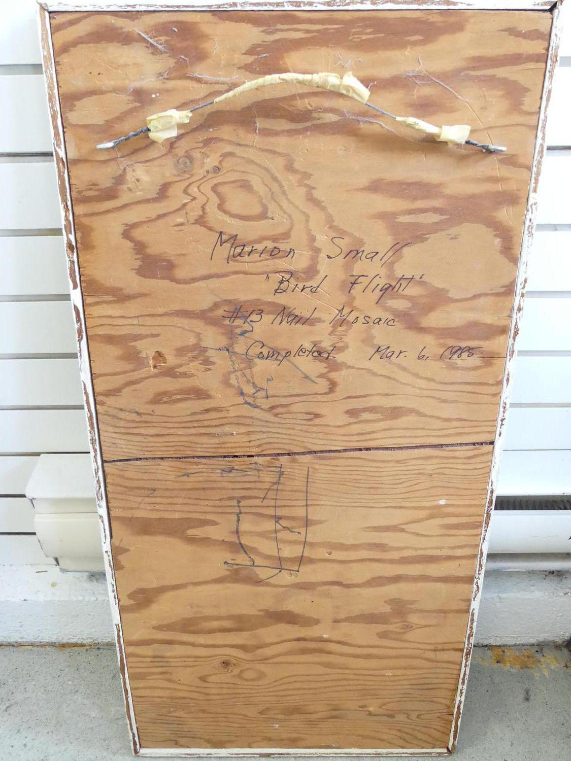marion small, nail mosaic #13, dated 1985, 34" x 17", "bird flight"