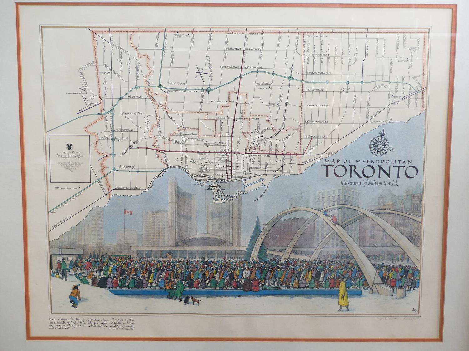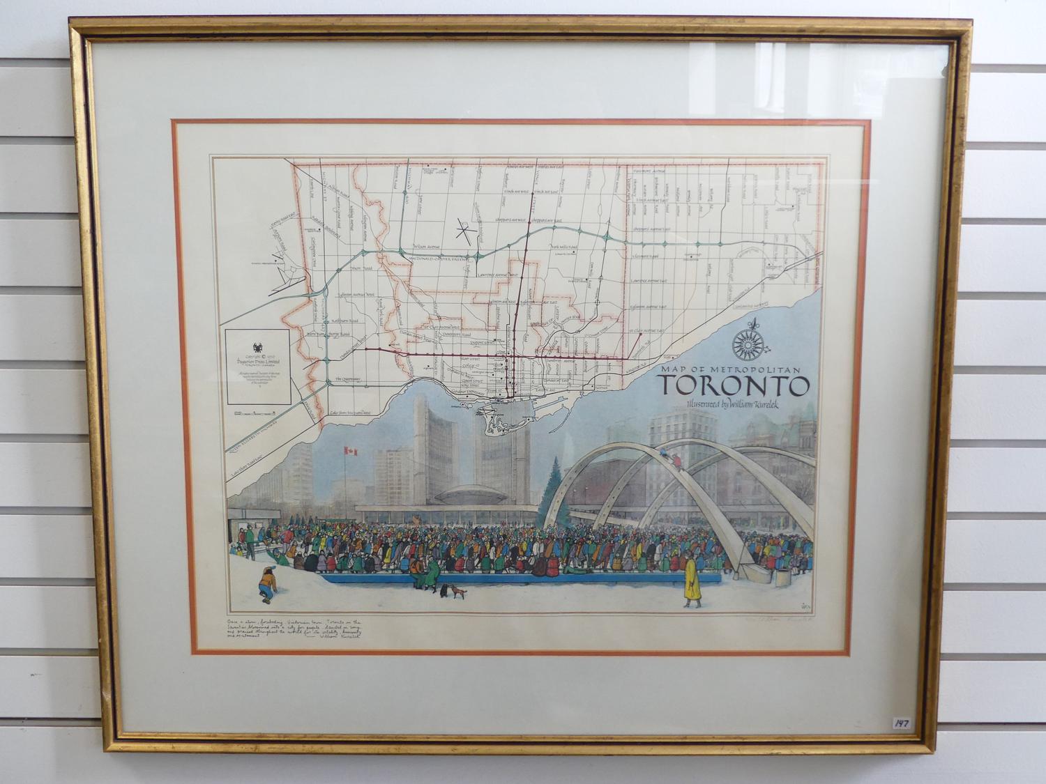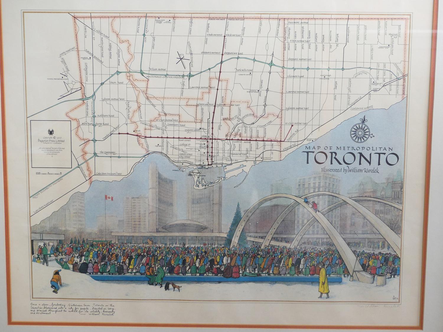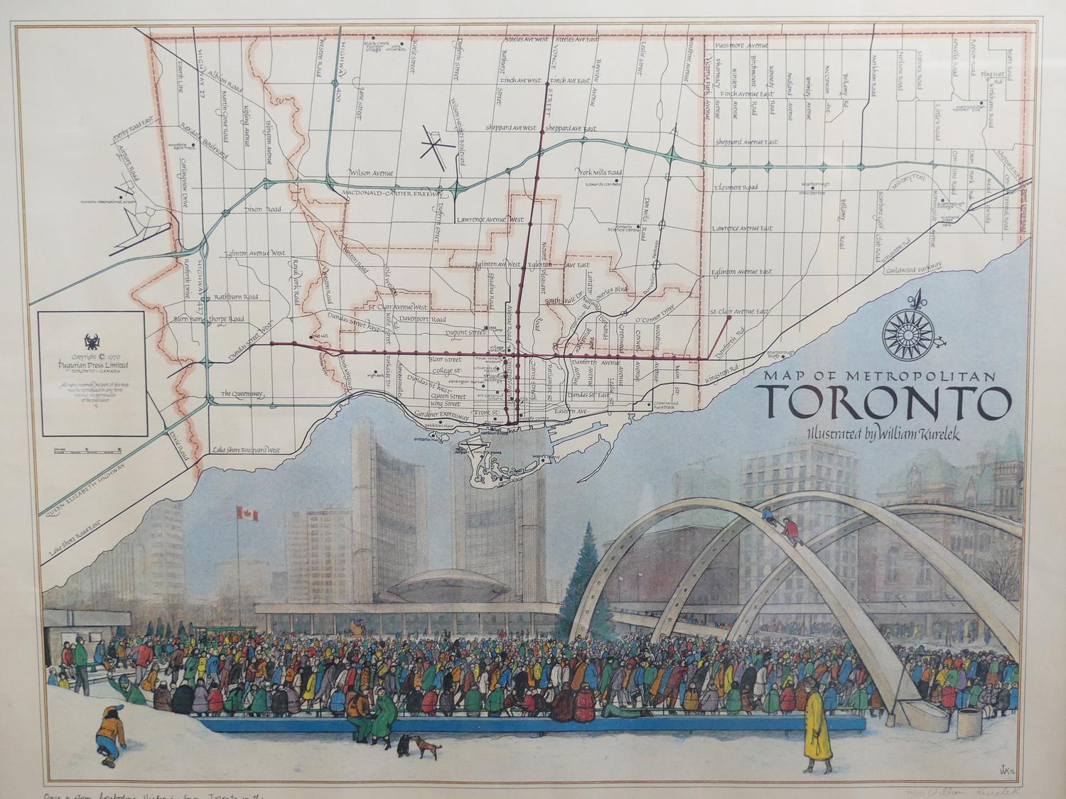 william kurelek (1927-1977), lithograph in colours d.1976, 18 1/2" x 24", "map of metropolitan toronto"