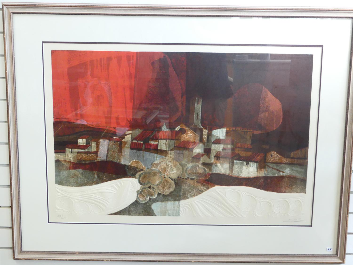 alvar sunol munoz-ramos (b.1935), lithograph in colours #156/225, 24" x 36", "city scape"