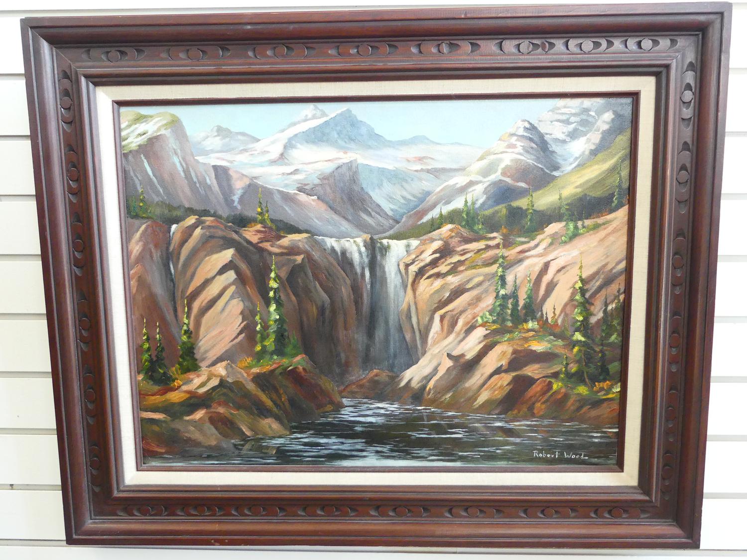 robert wood, oil on canvas, 18" x 24", "mountain landscape"