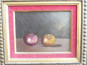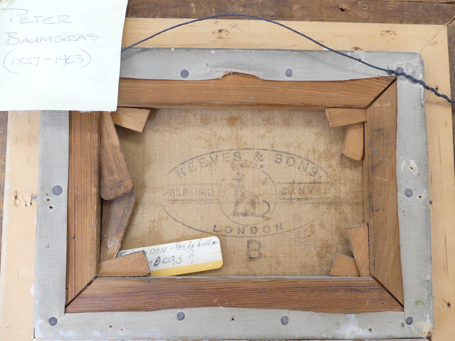 attributed to peter baumgras, (1827-1903), oil on board, 6" x 8", "stil life"