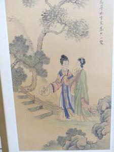chinese framed scroll painting, 47" x 24 1/4"